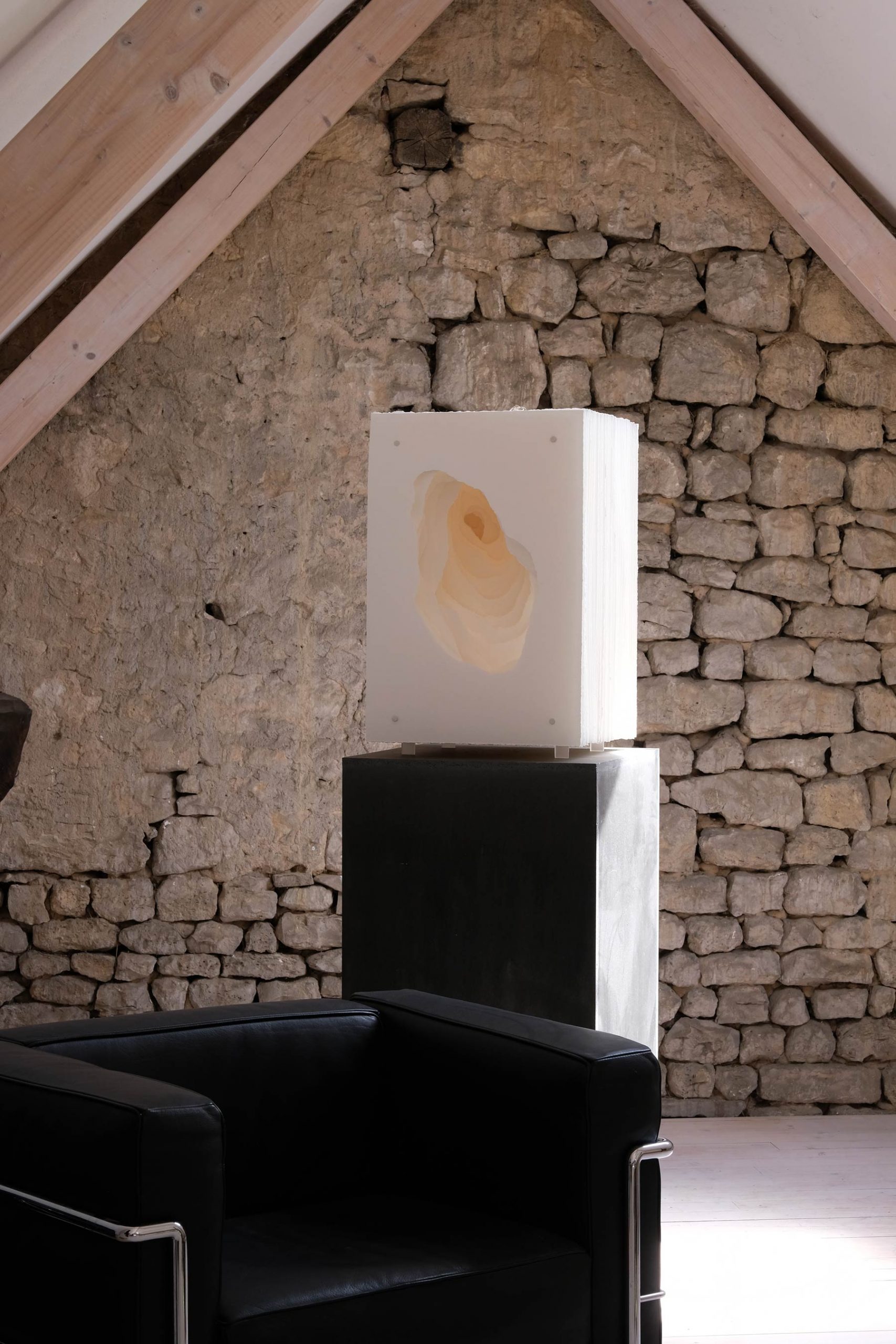2025-006 Paperwall, Papier 400 g, gerissen, Halterung aus Metall und Kunststoff, 130 x 106 x 33 cm