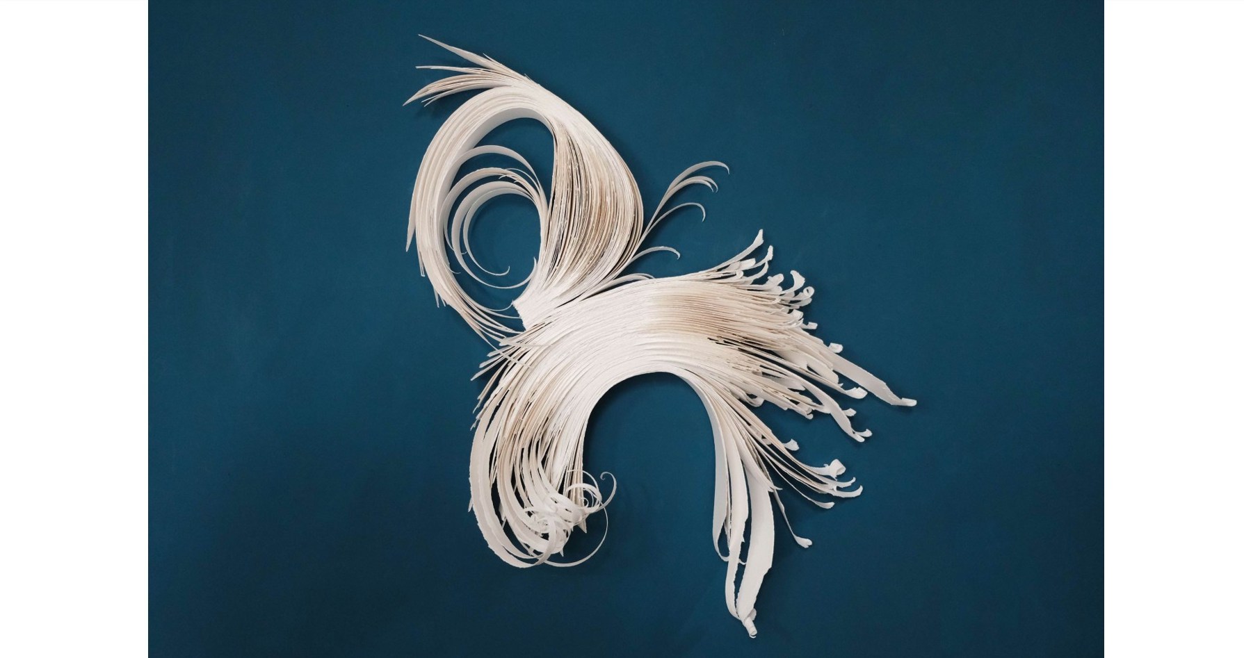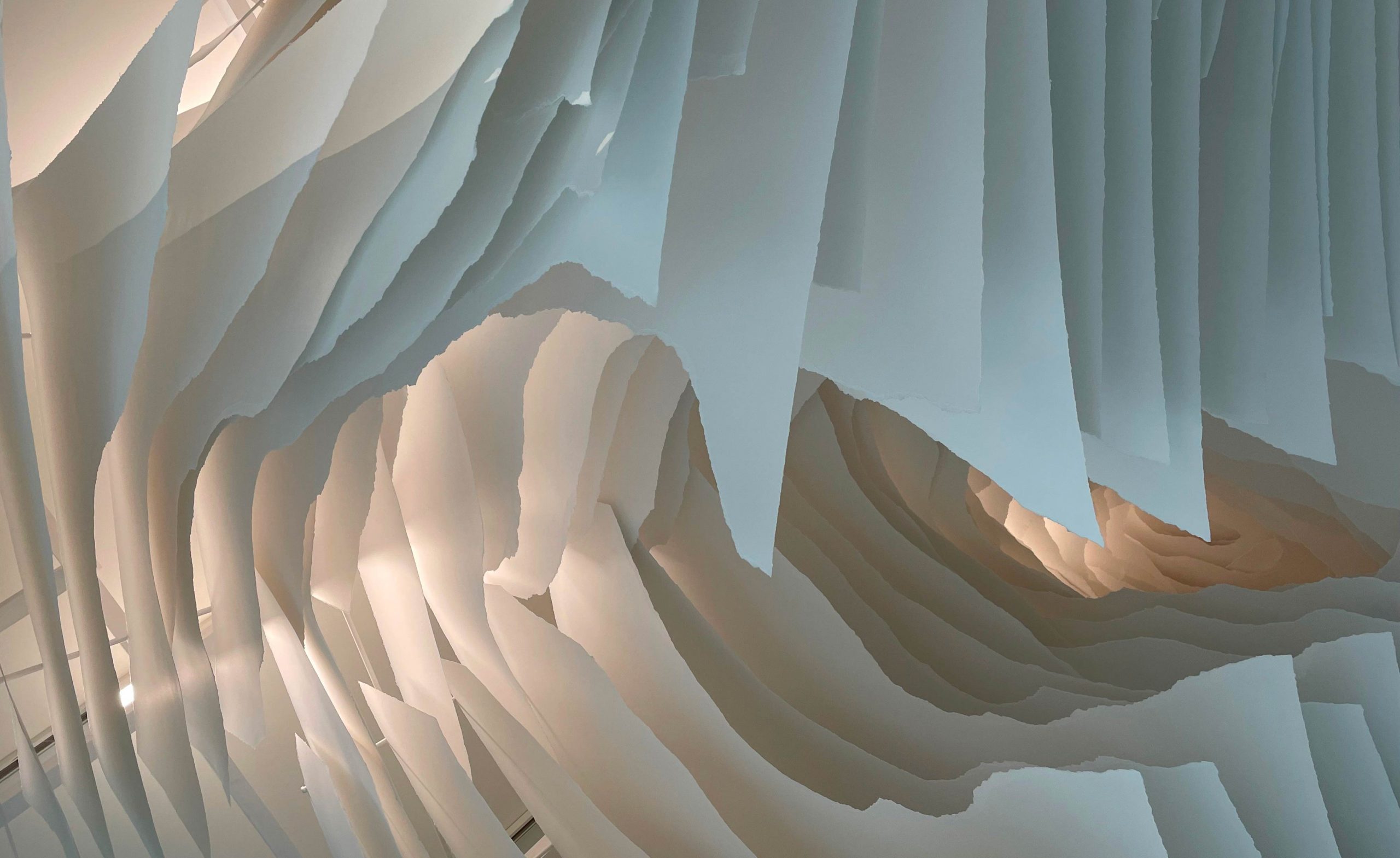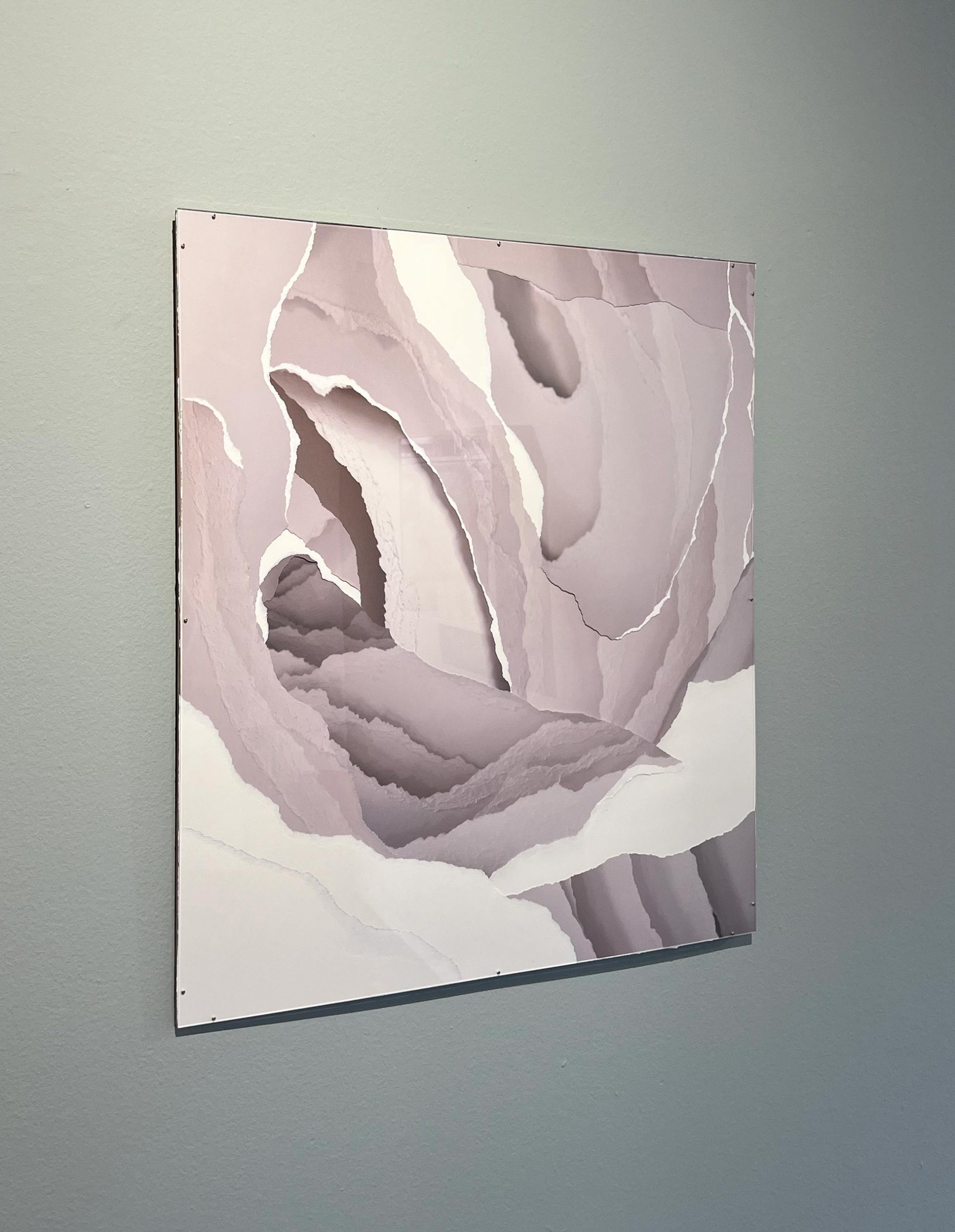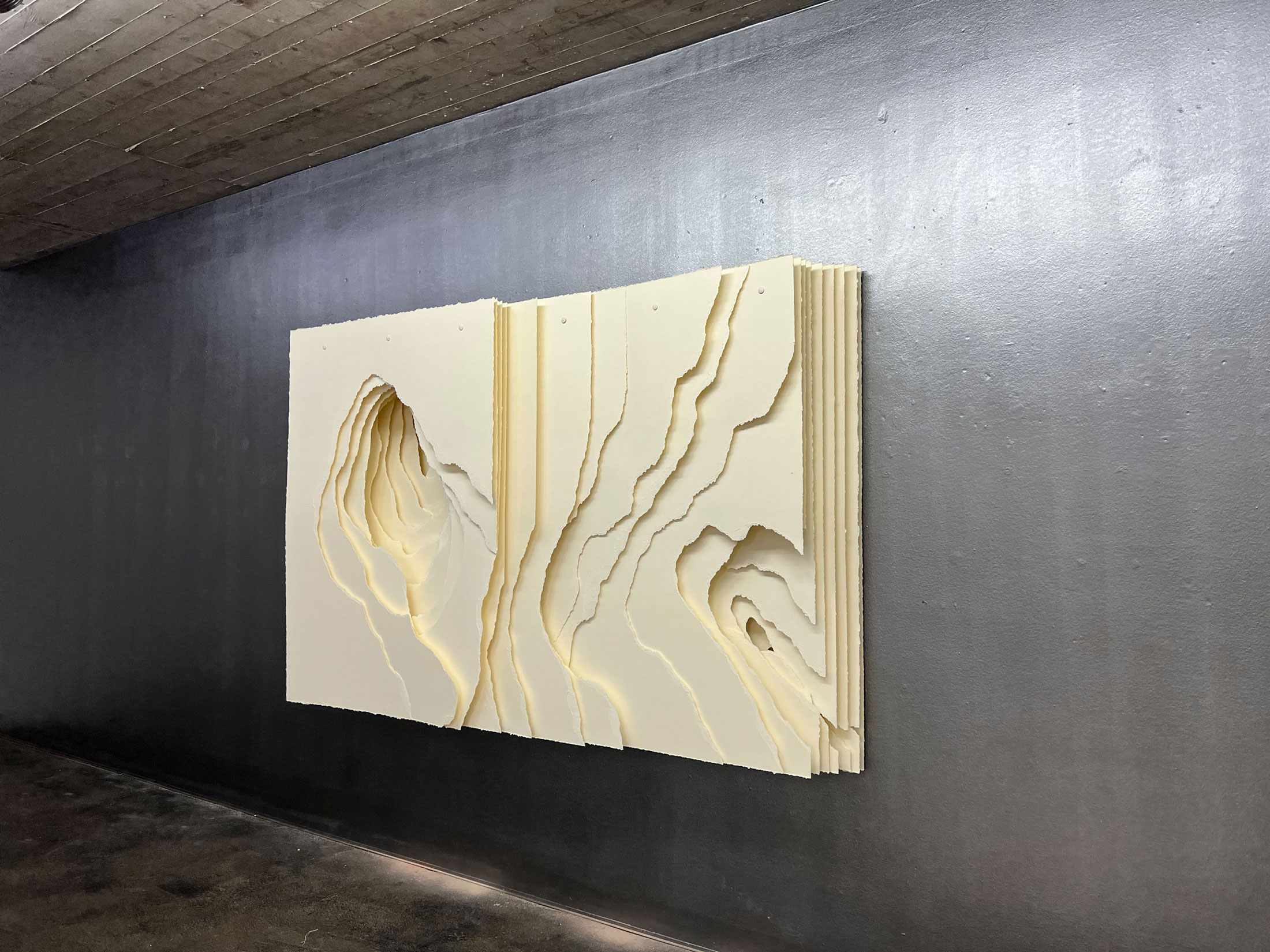 2024-033 Terforation, Papier 400 g, gerissen, Halterung aus Metall und Kunststoff, 137 x 146 x 62 cm
