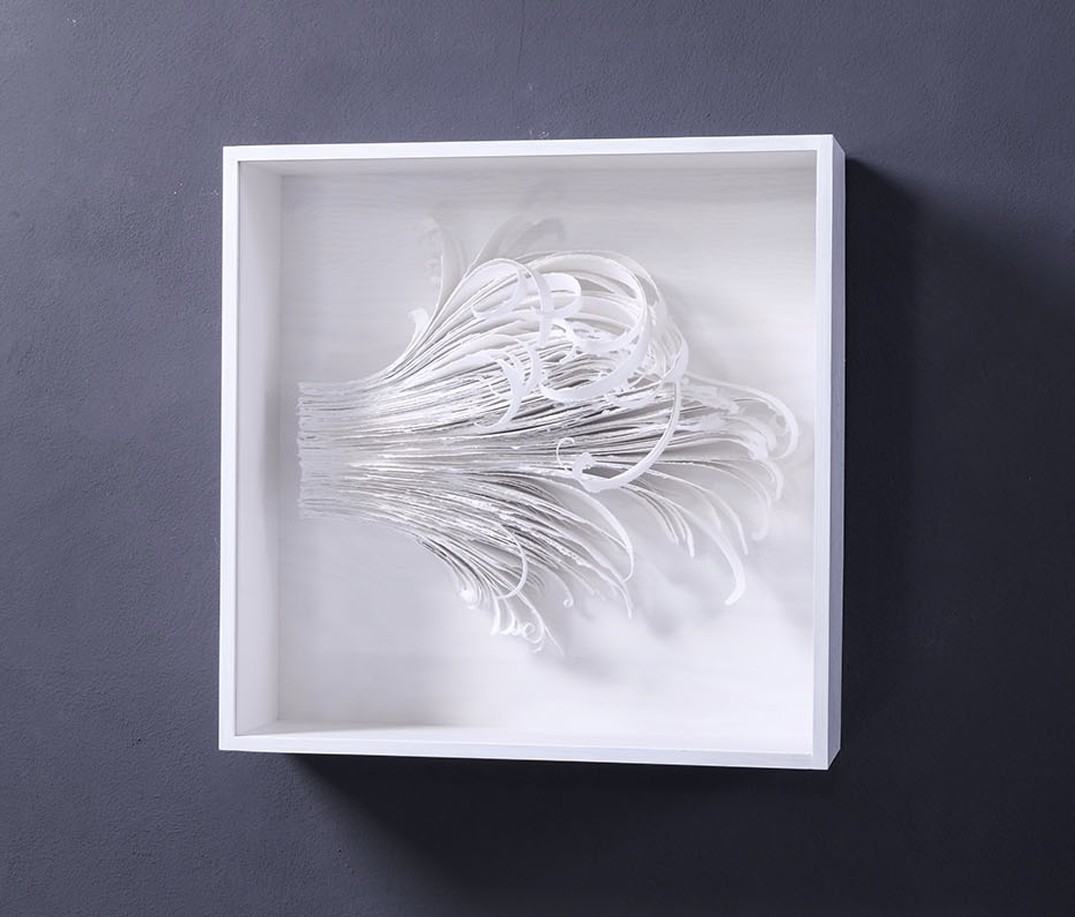 2019-021 Paperwall, Papier 400 g, gerissen, geschraubt, geleimt, gerahmt, Objekt: 42 x 42 x 14 cm, Cover: 51,5 x 51,5 x 15 cm