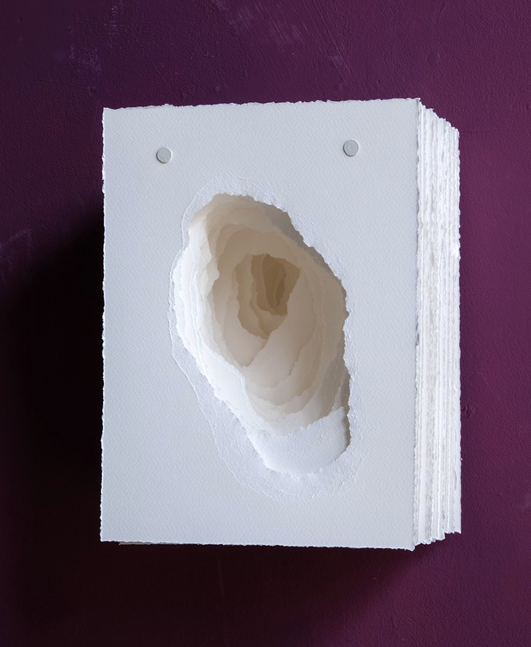 2019-012 Terforation, Papier 200g, gerissen, Halterung aus Metall und Kunststoff, 29 x 21 x 17,5 cm