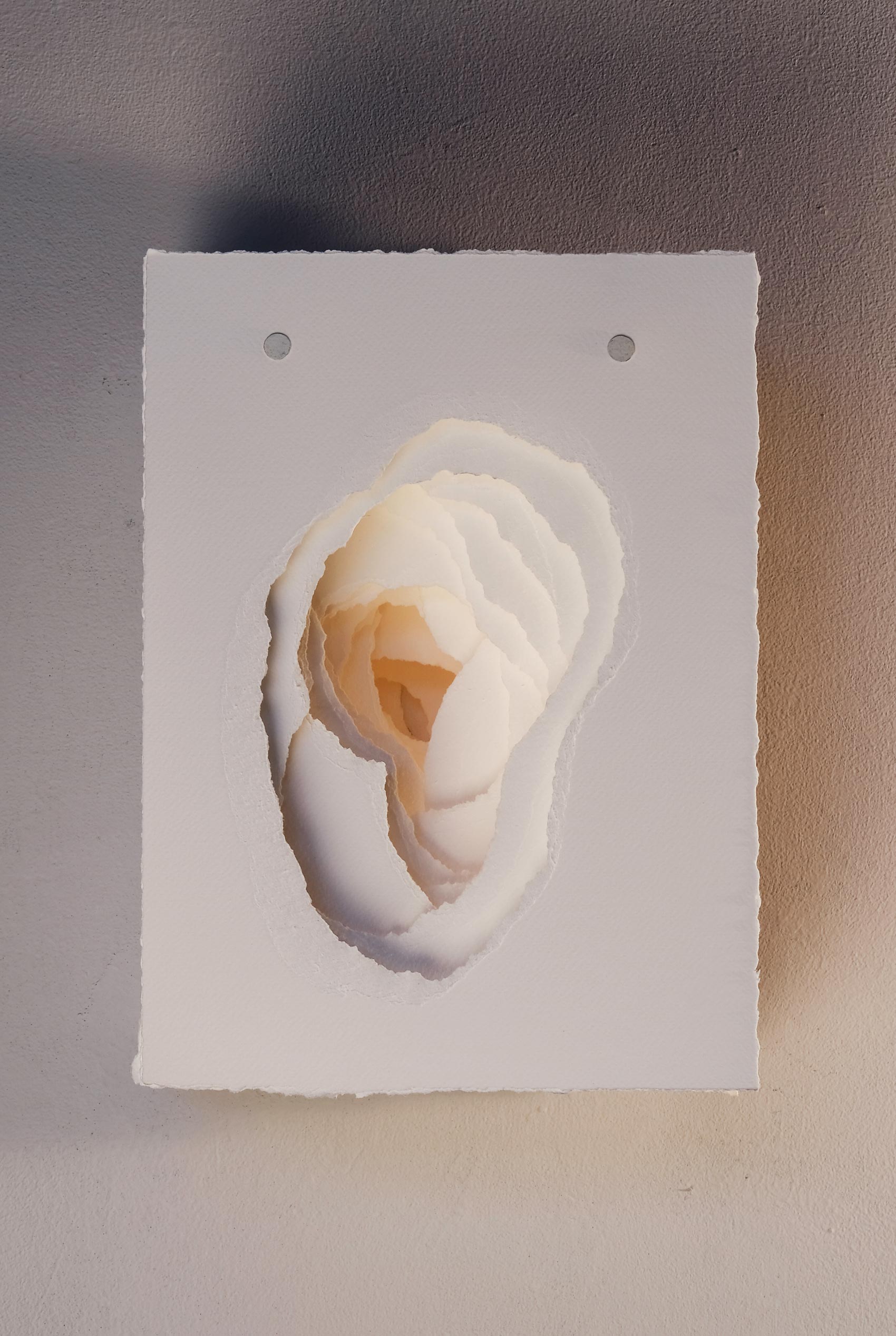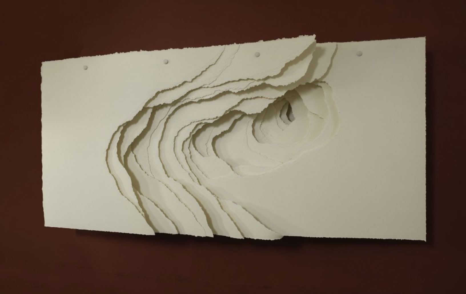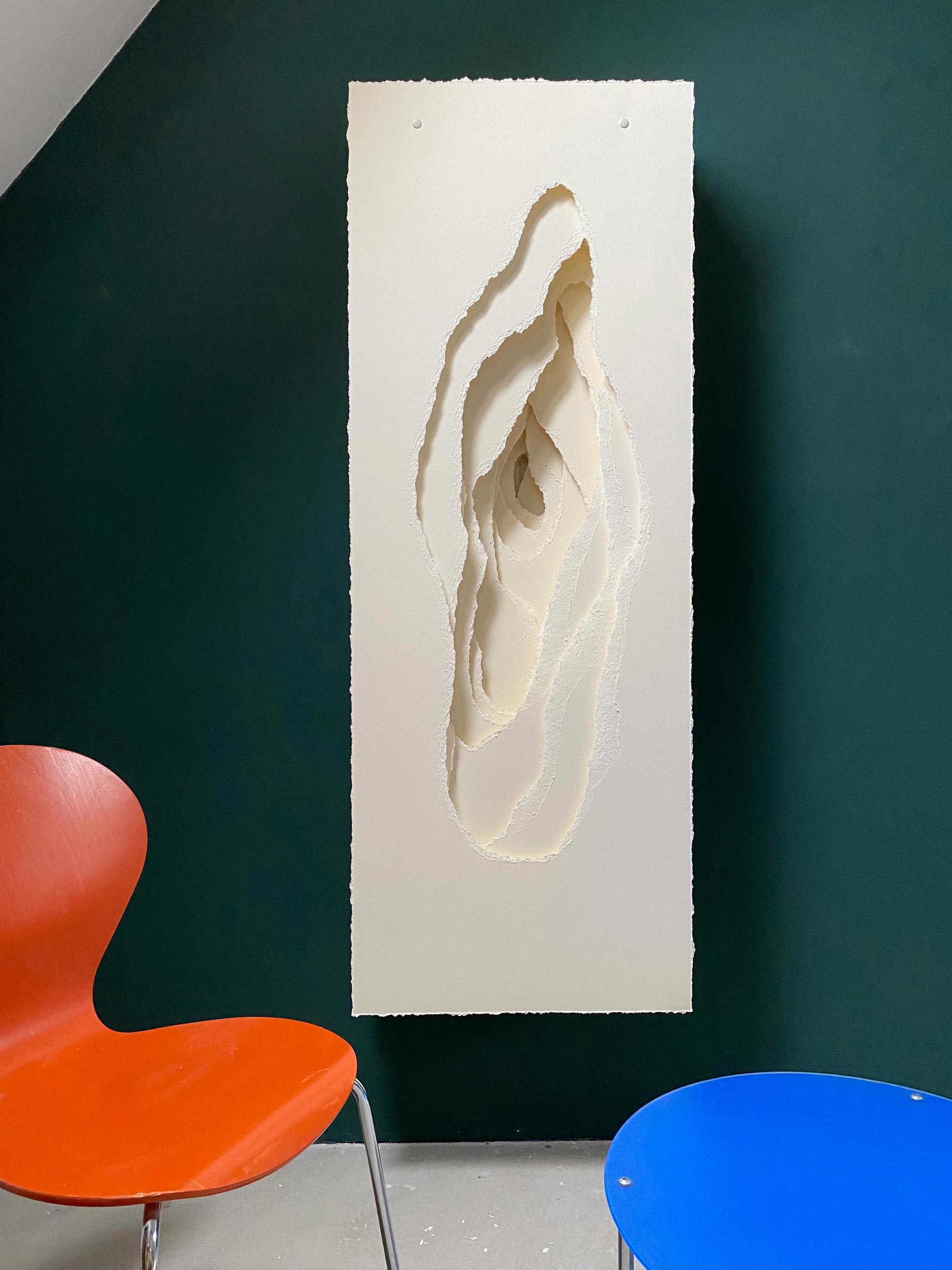 2022-013 Terforation, Papier 200g, gerissen, Halterung aus Metall und Kunststoff, 74 x 51 x 22 cm
