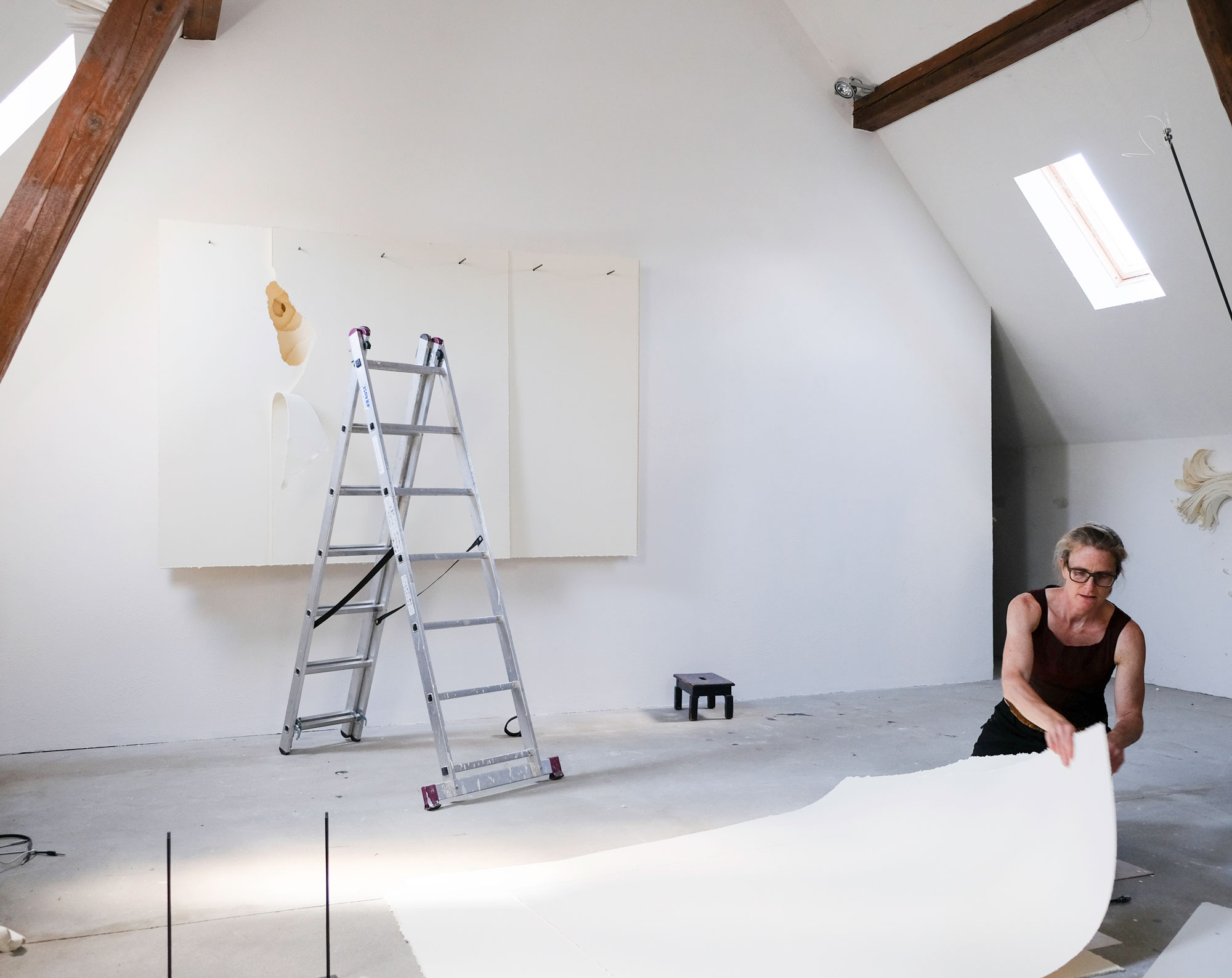 2018-033 Paperwall, Papier 300g (hellweiß), gerissen, geschraubt,geleimt, 55 x 55 x 10 cm