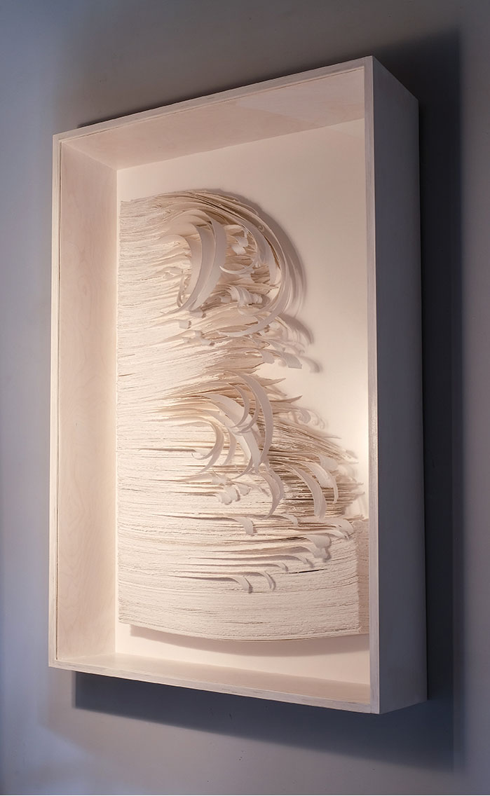 2018-003 Paperwall, Papier 400g (hellweiß), gerissen, geschraubt, geleimt, gerahmt, Objekt: 100 x 60 x 15 cm, Cover: 126 x 75 x 20 cm