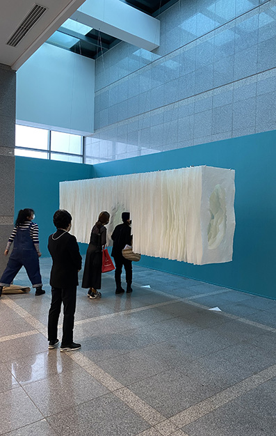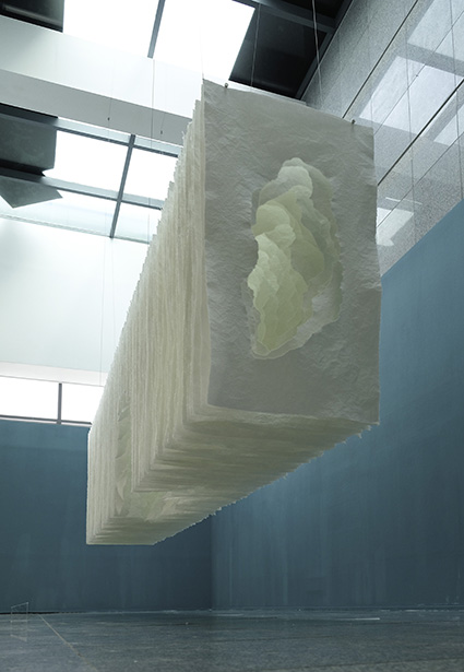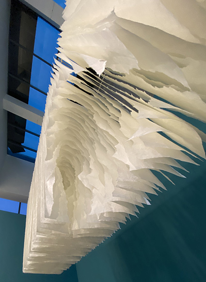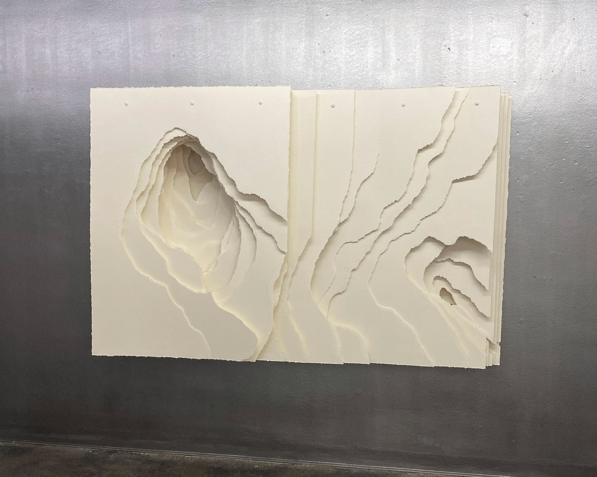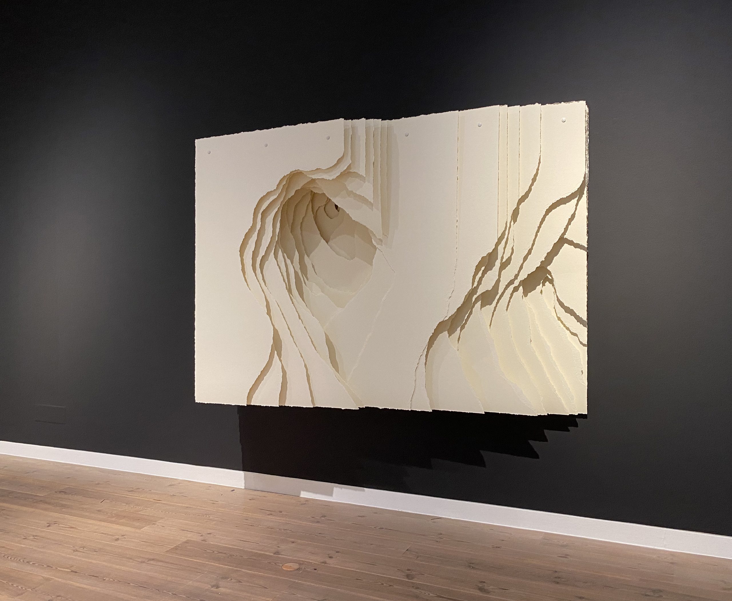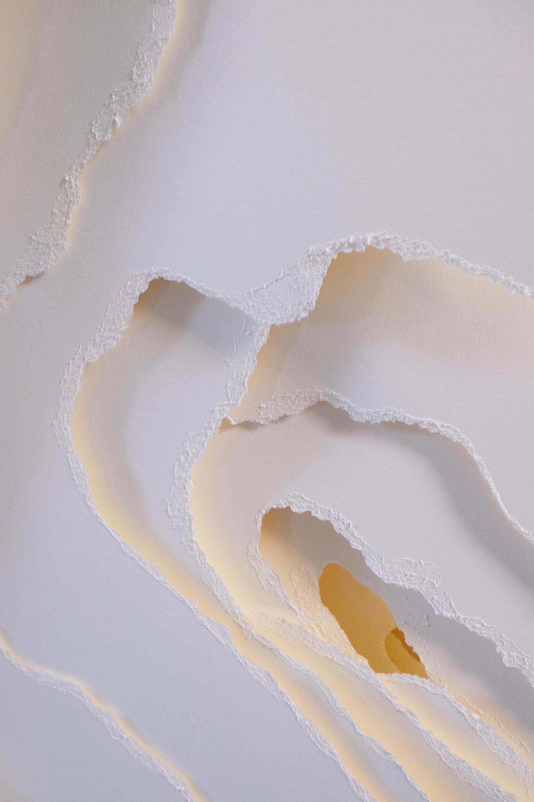 Terforation 2022-036, Papier 400 g, gerissen, Halterung aus Metall und Kunststoff, 245 x 159 x 40 cm