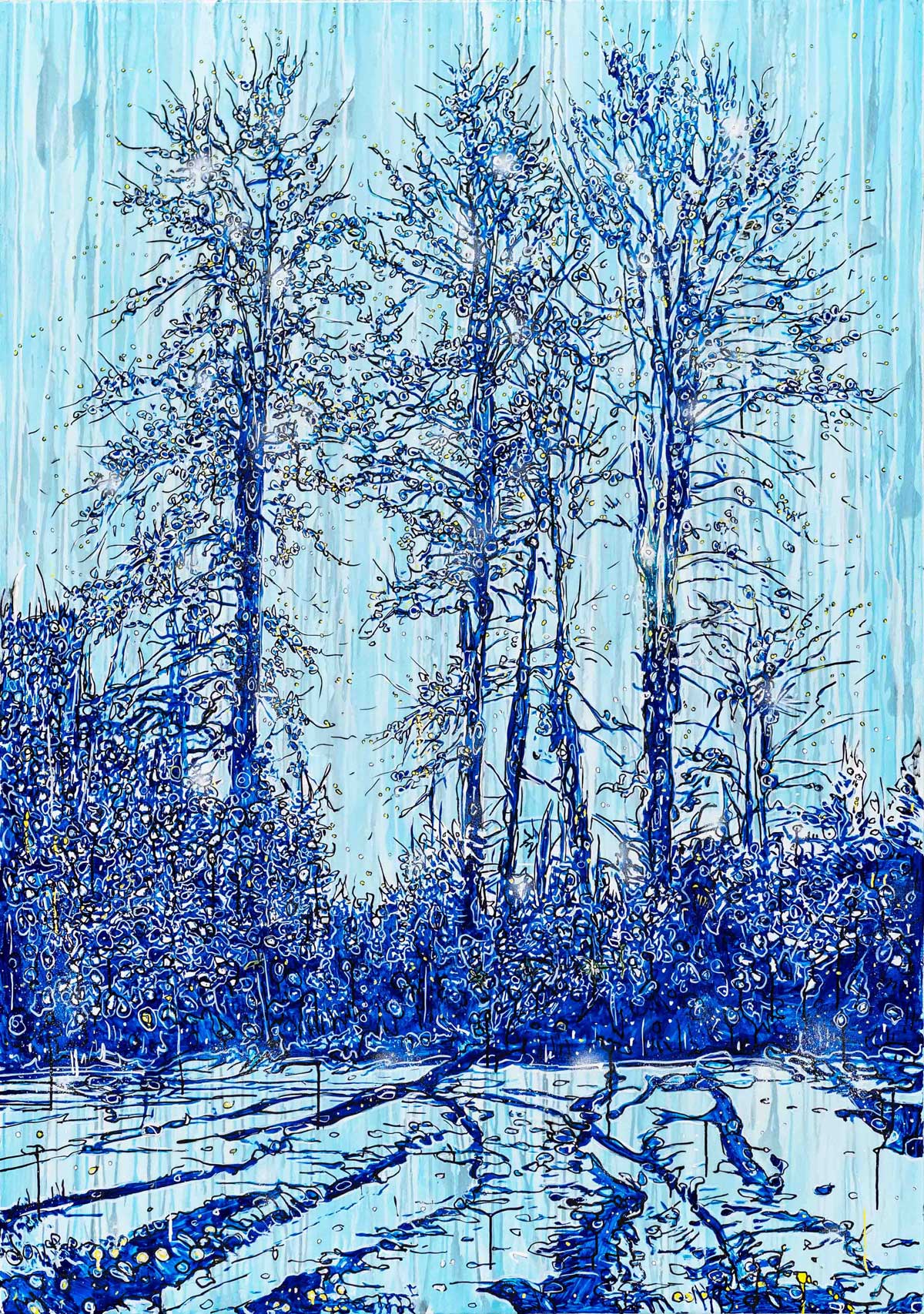 Zwischen den Bäumen, 2022, 200 x 140 cm, Mischtechnik auf Leinwand, € 14.500,-