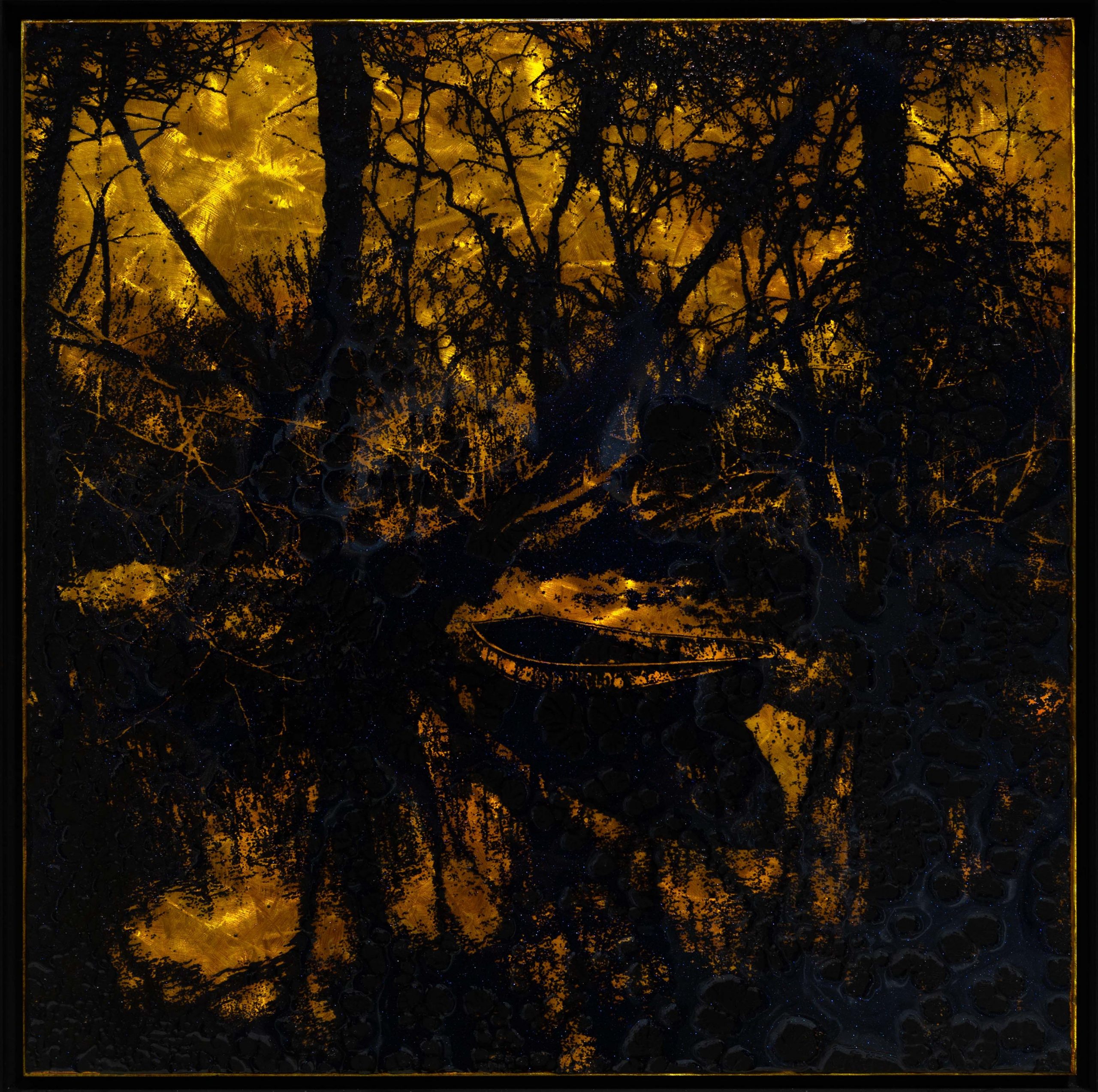 Letzte Nacht, 2026, Malerei / Reliefdruck auf Aluminium, 61 x 61 cm, € 5.200,-