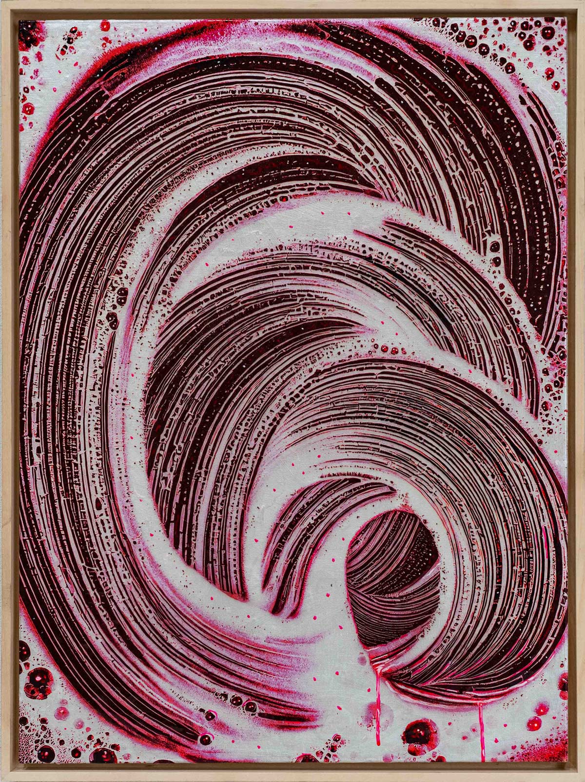Rollen, 2025, 80 x 60 cm, Malerei / Reliefdruck auf Holz, € 5.900,-
