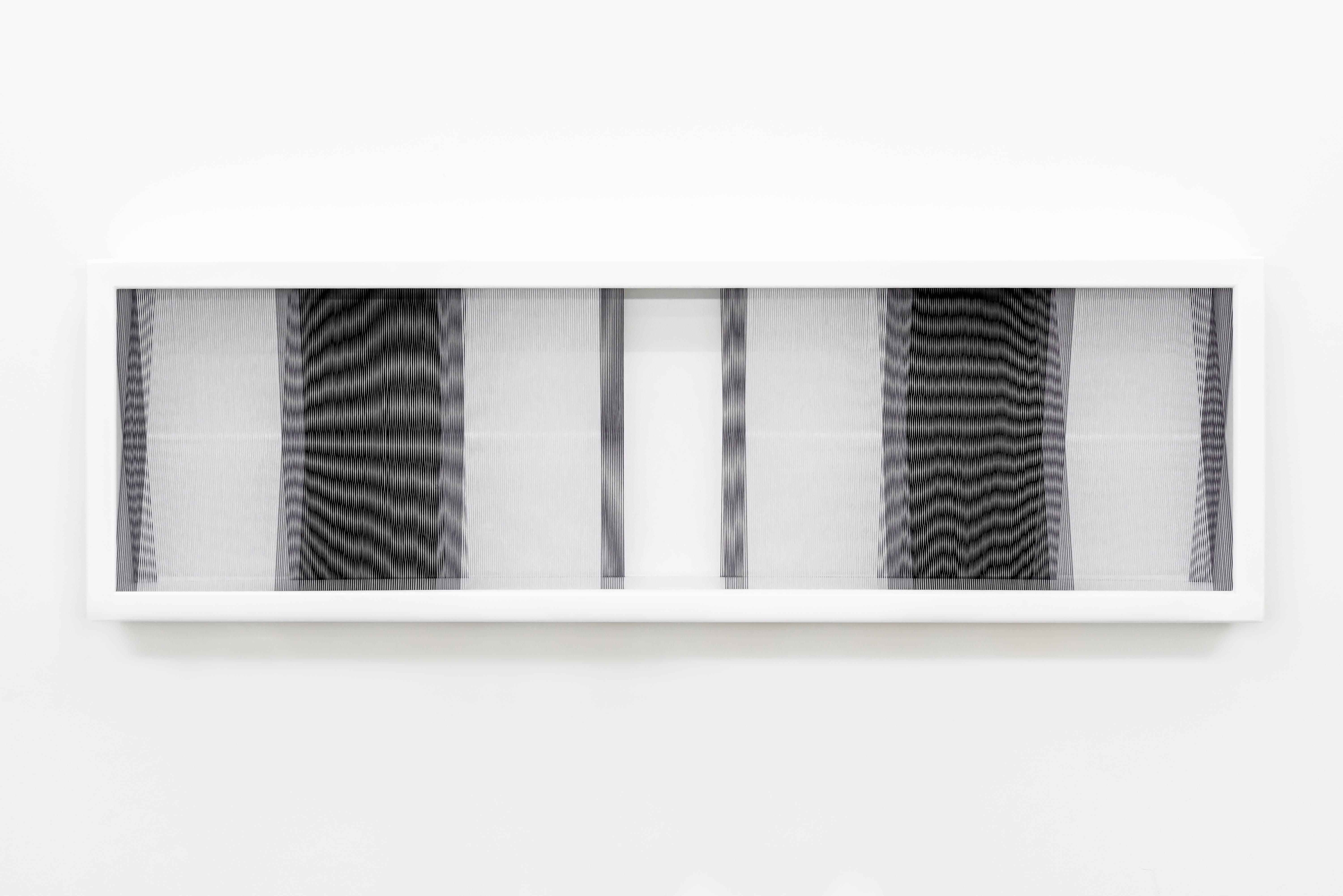 Illusion_bw1, 2018, Fäden, Holzrahmen, 100 x 30 cm