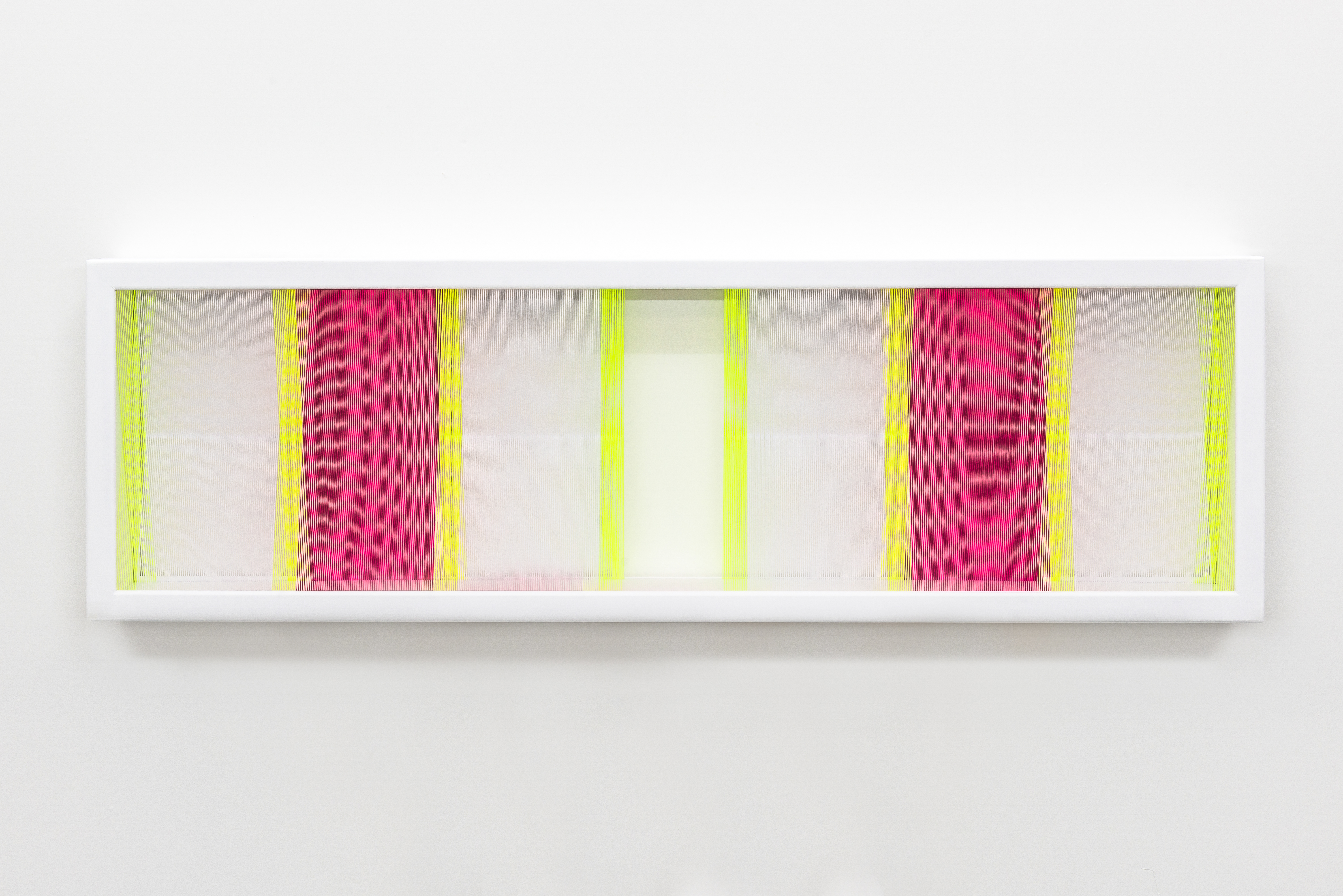 Illusion_ym2, 2018, Fäden, Holzrahmen, 100 x 30 cm