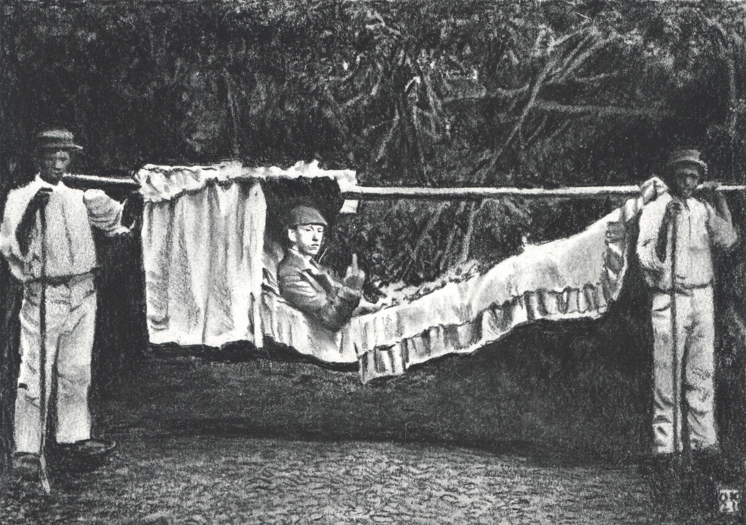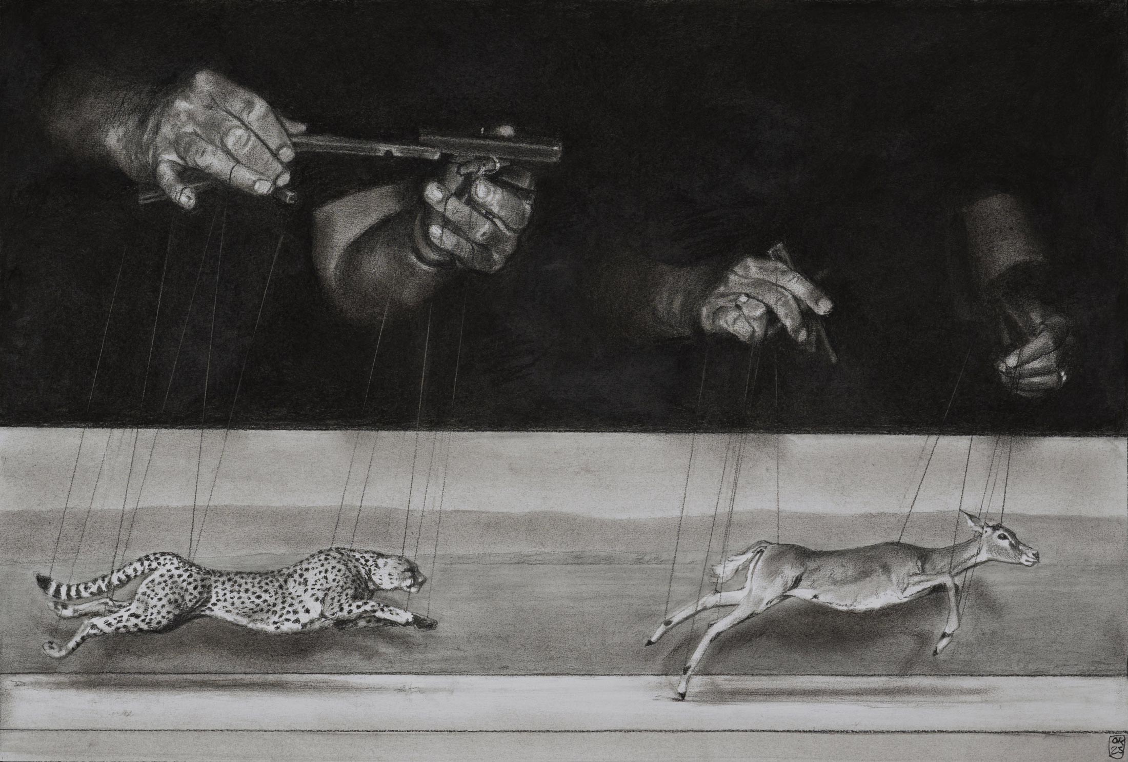 Marionettenspieler, 2023, Kohle auf Papier, 55 x 81,5 cm