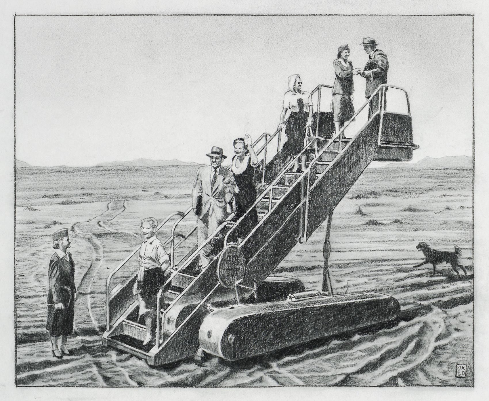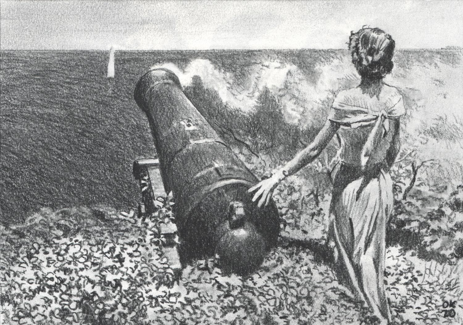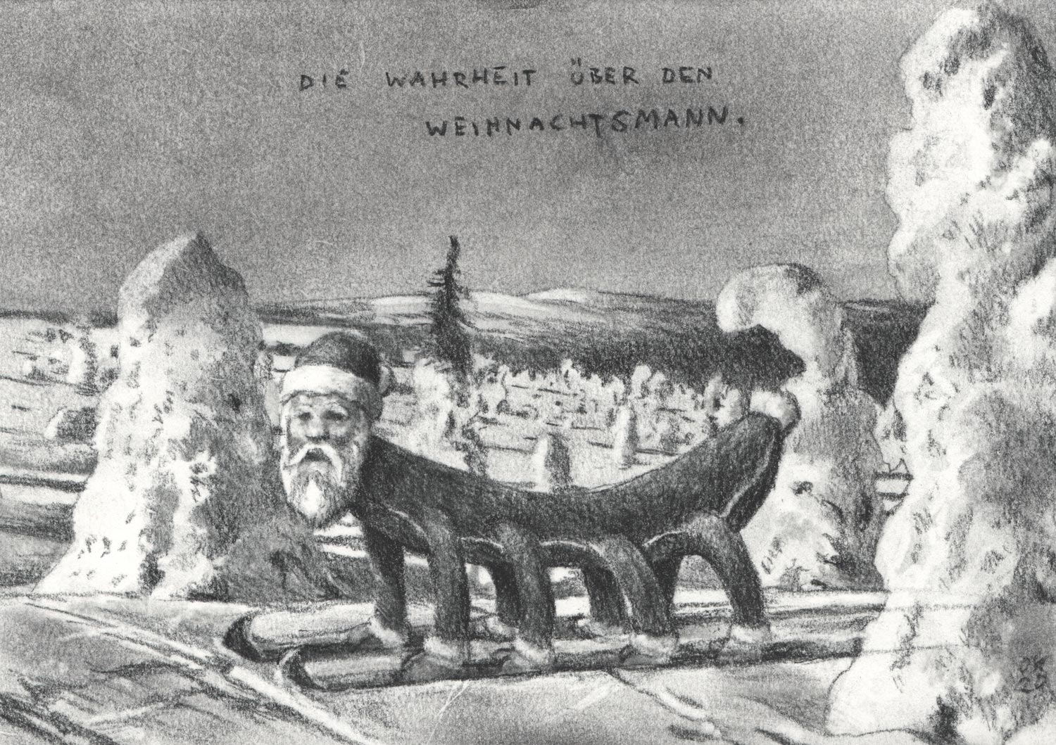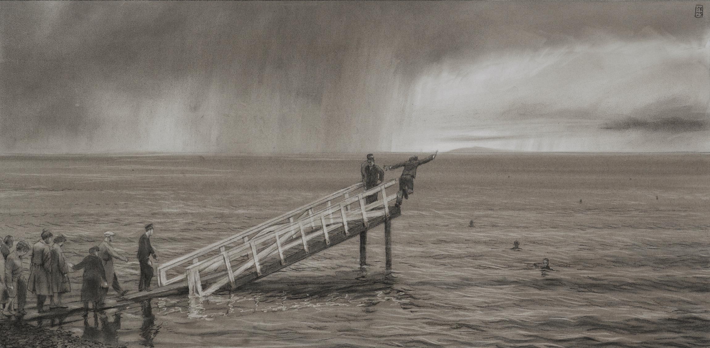 Der Start, 2023, Kohle auf Papier, 42,3 x 85,5 cm