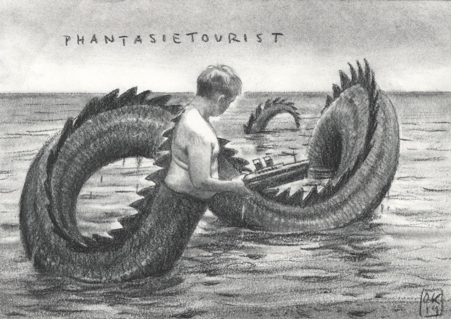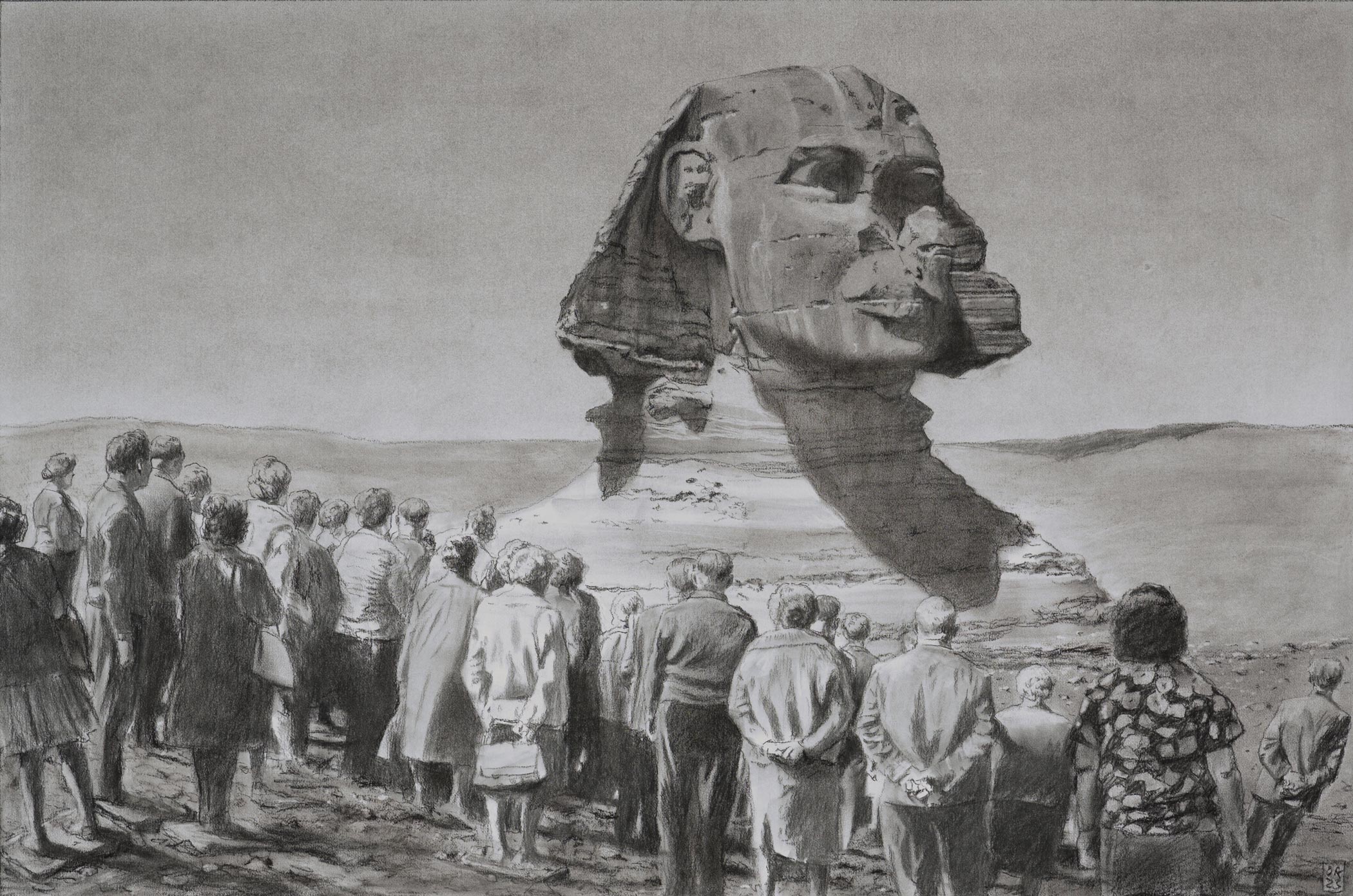 Skulpturale Touristen, 2023, Kohle auf Papier, 53,5 x 81 cm
