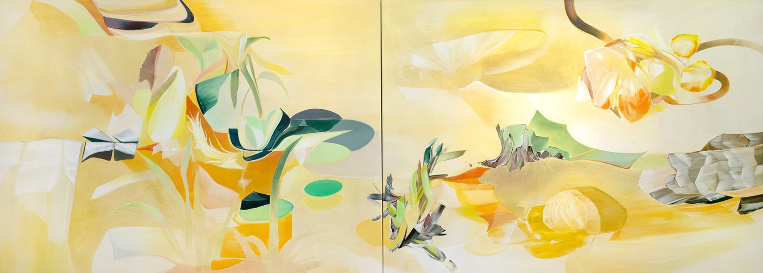 Morgana’s spell, 2025, Acryl auf Leinwand, 130 x 360 cm (Diptychon)