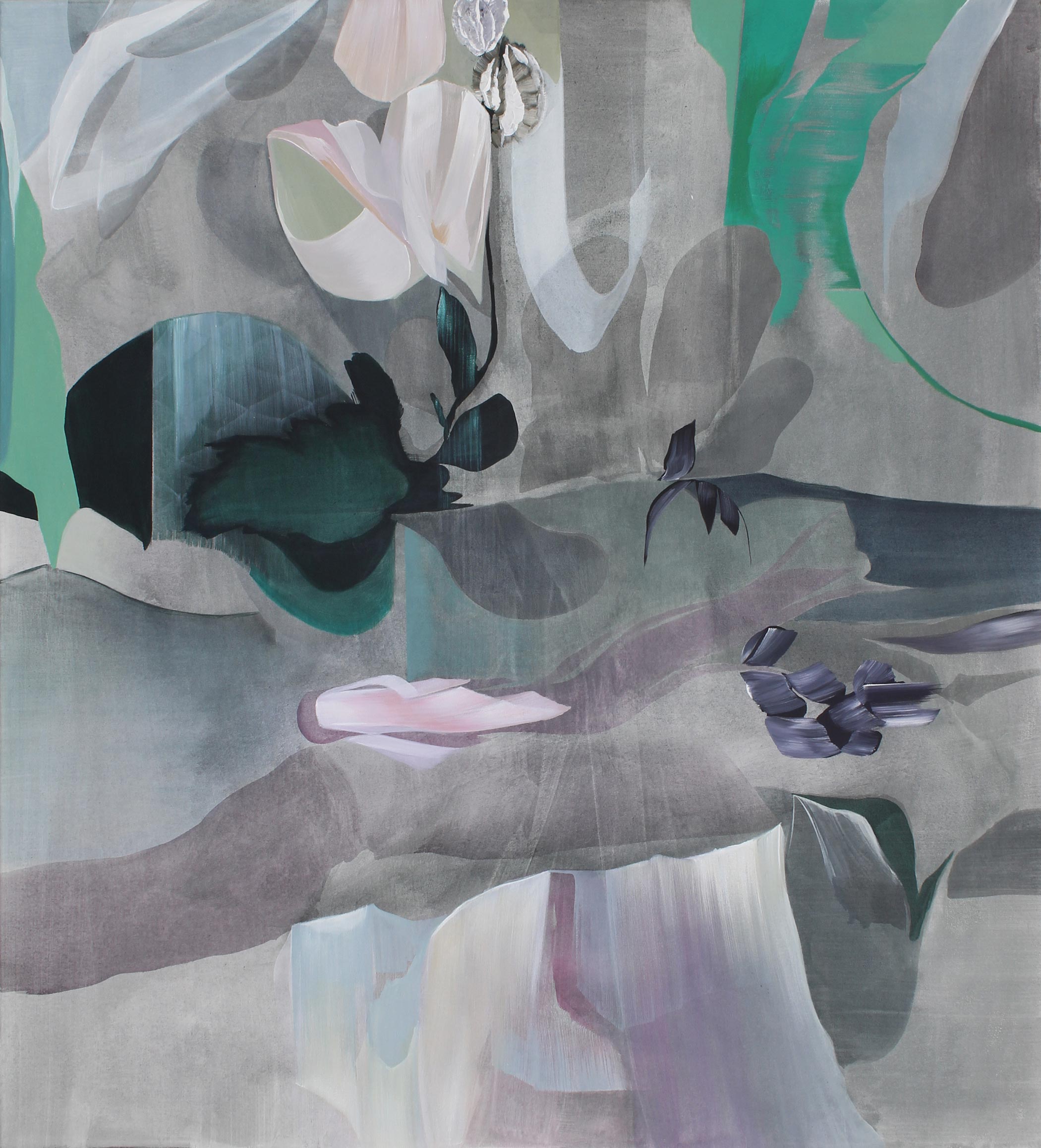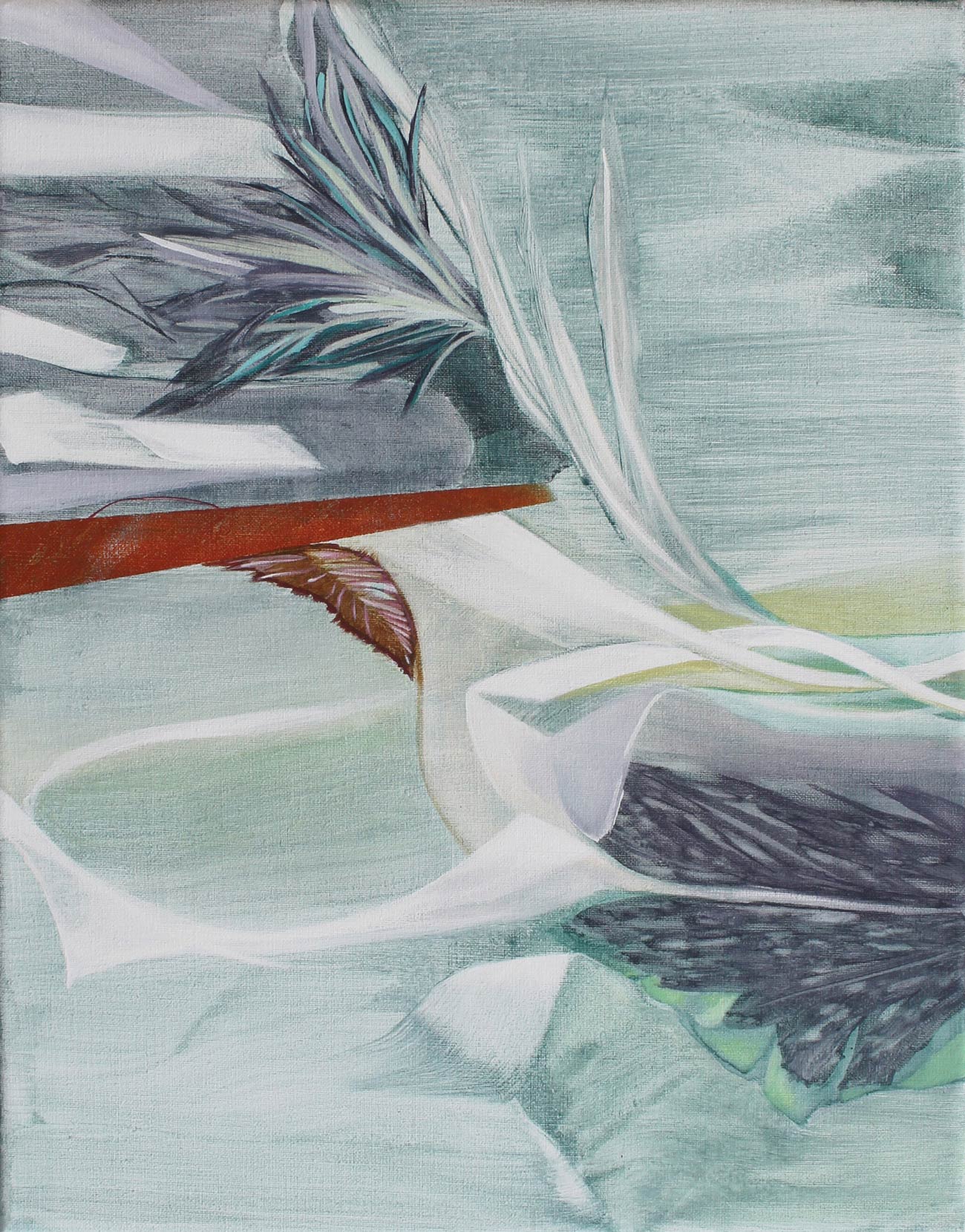 Feathery setting, 2025, Acryl auf Leinwand, 100 x 90 cm