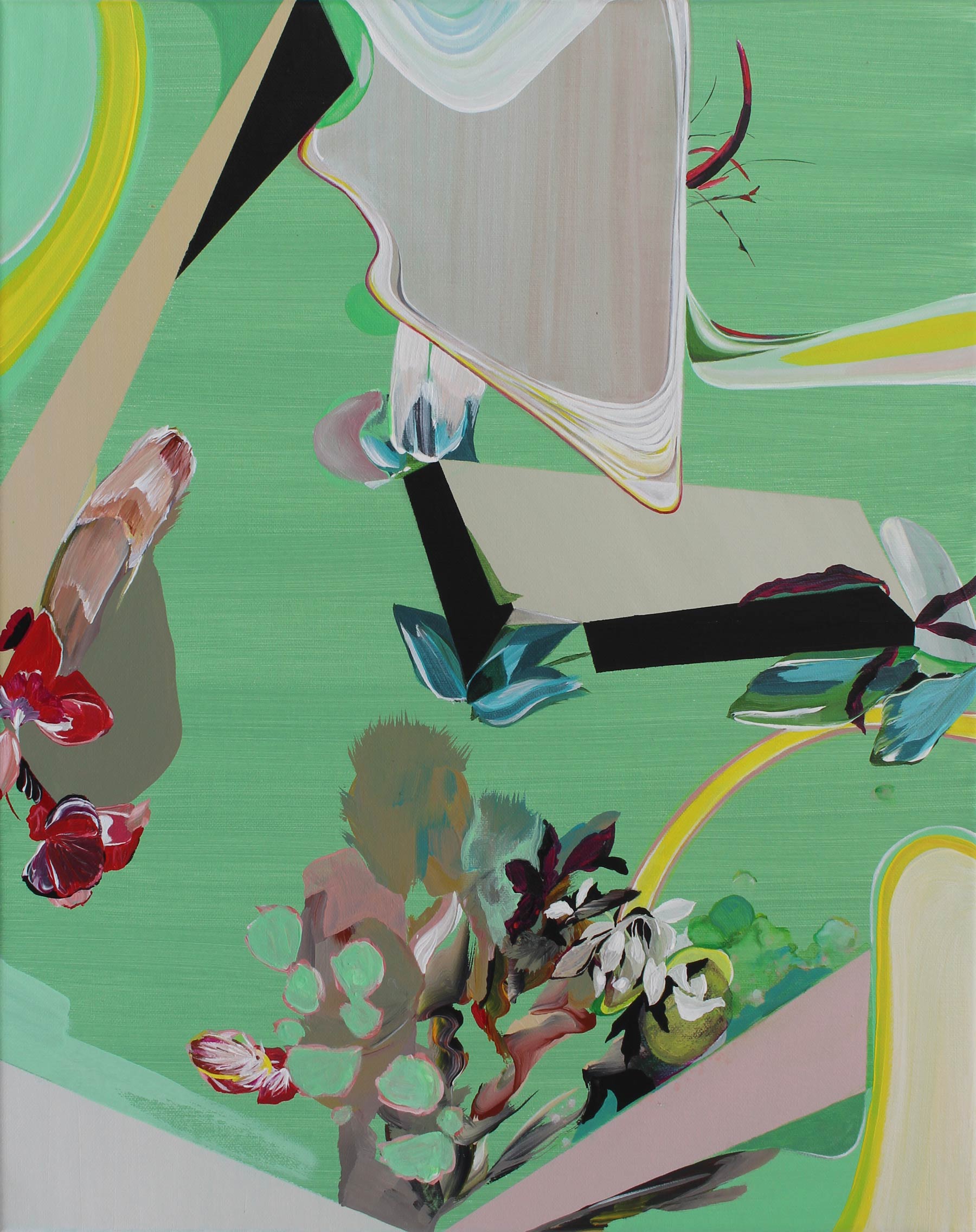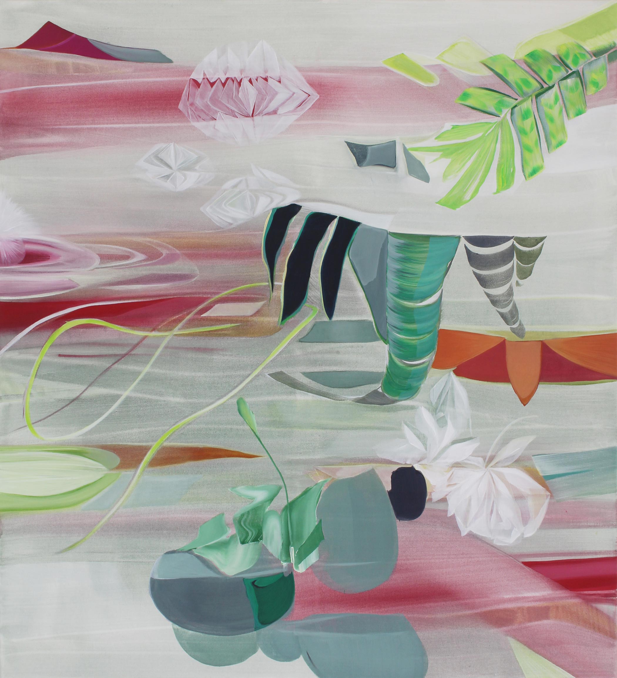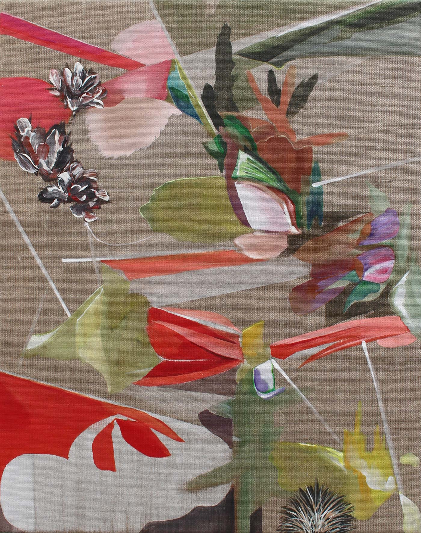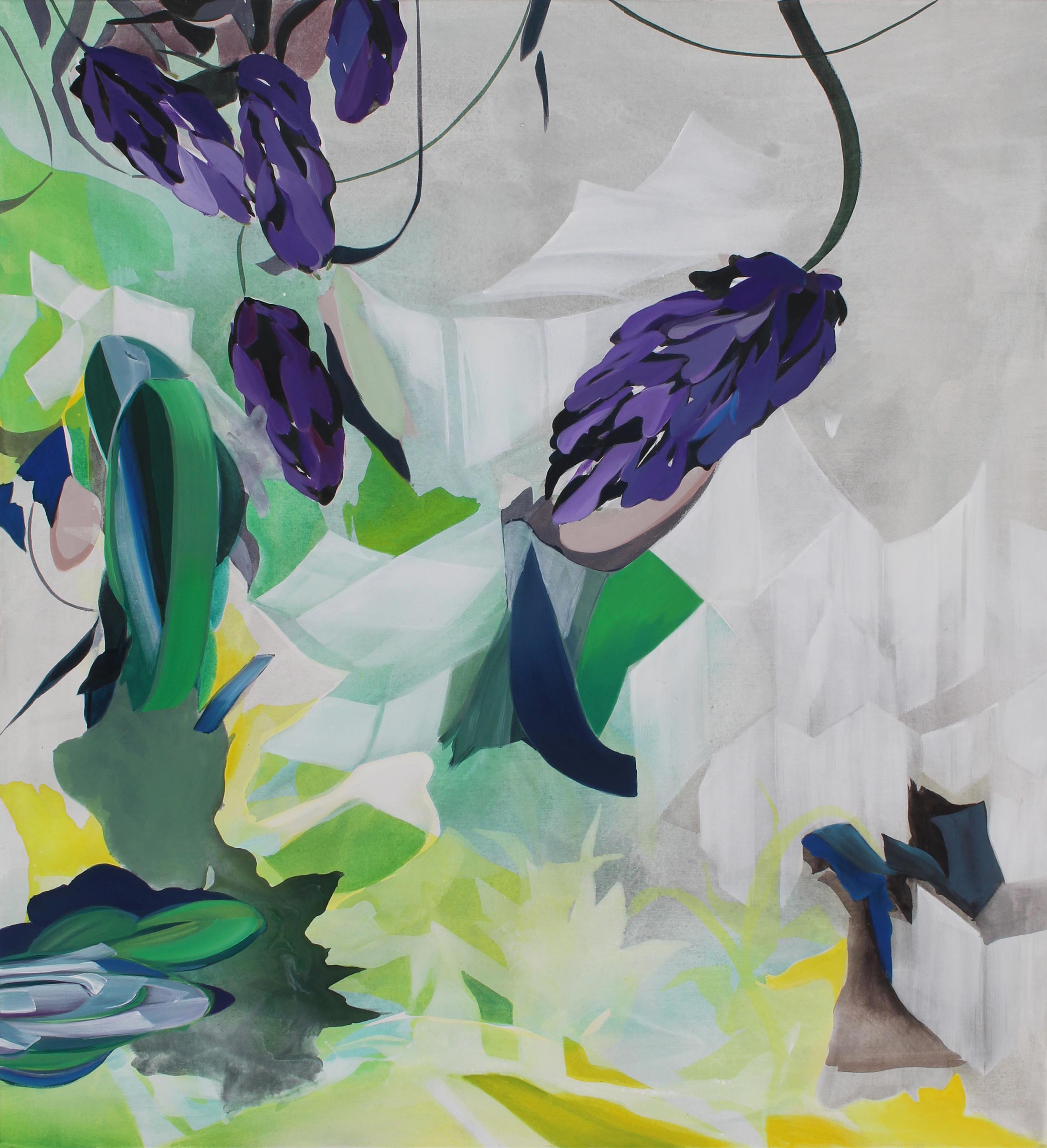 Split plant in splintered square, 2024, Acryl auf Leinwand, 100 x 90 cm