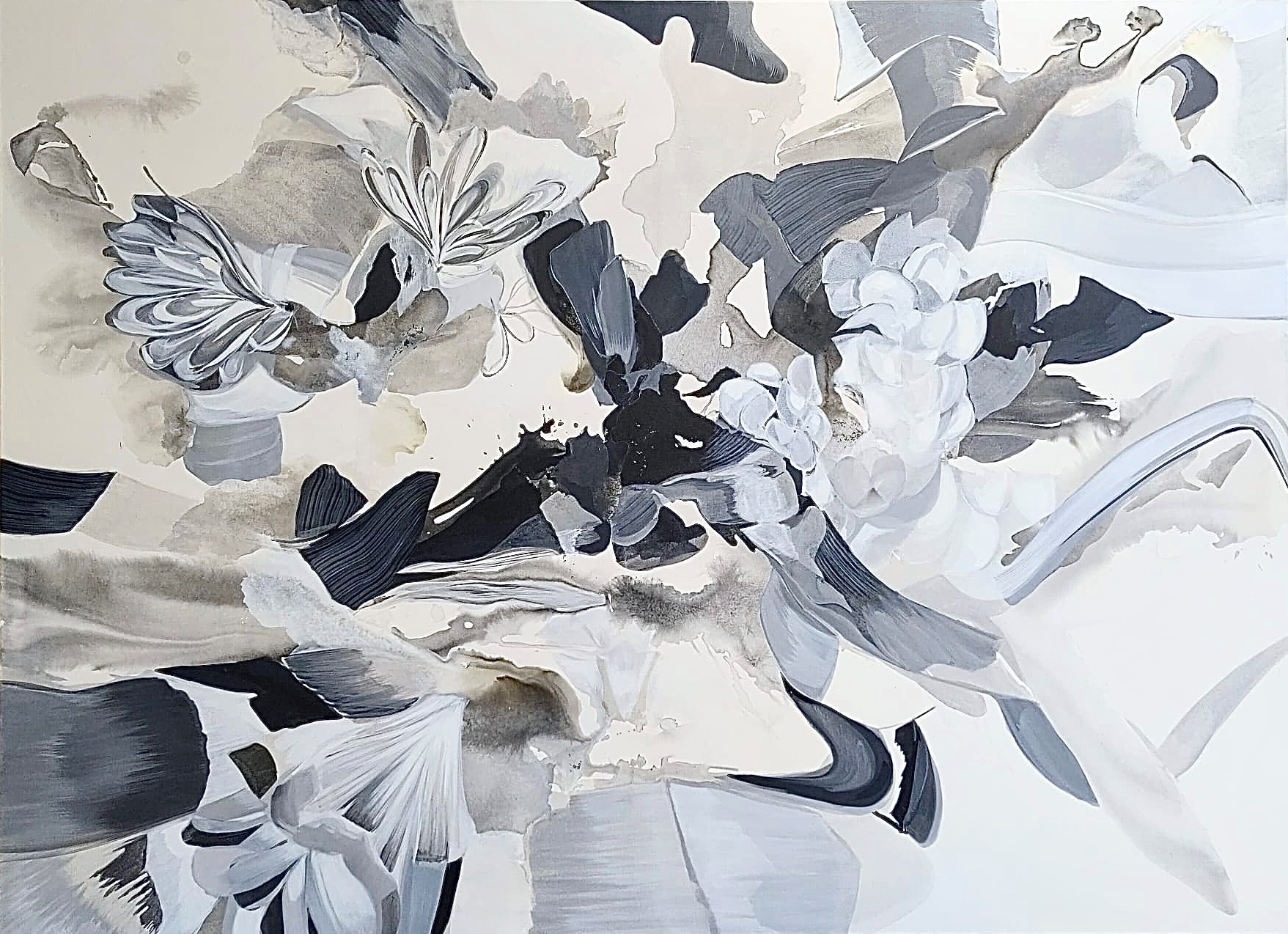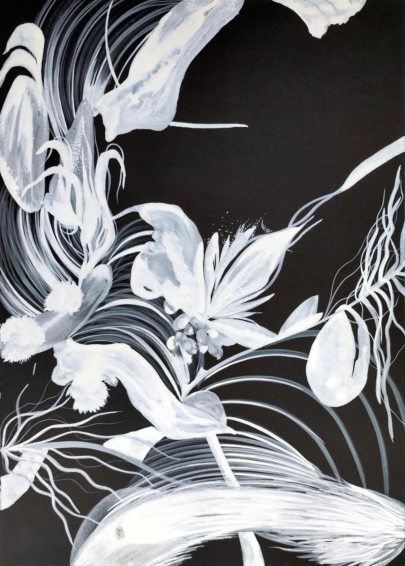 glass garden, 2023, Tusche auf Leinwand, 160 x 140 cm