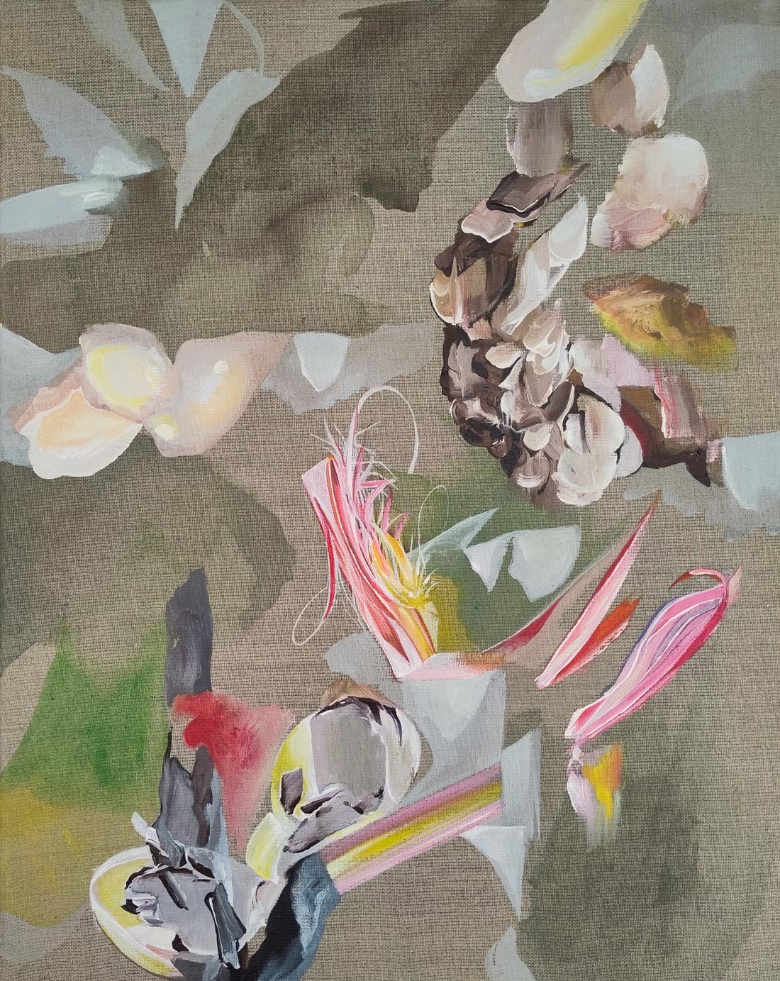 Tatiana Urban: Bands, bends, 2024, Acryl auf Leinwand, 50 x 40 cm