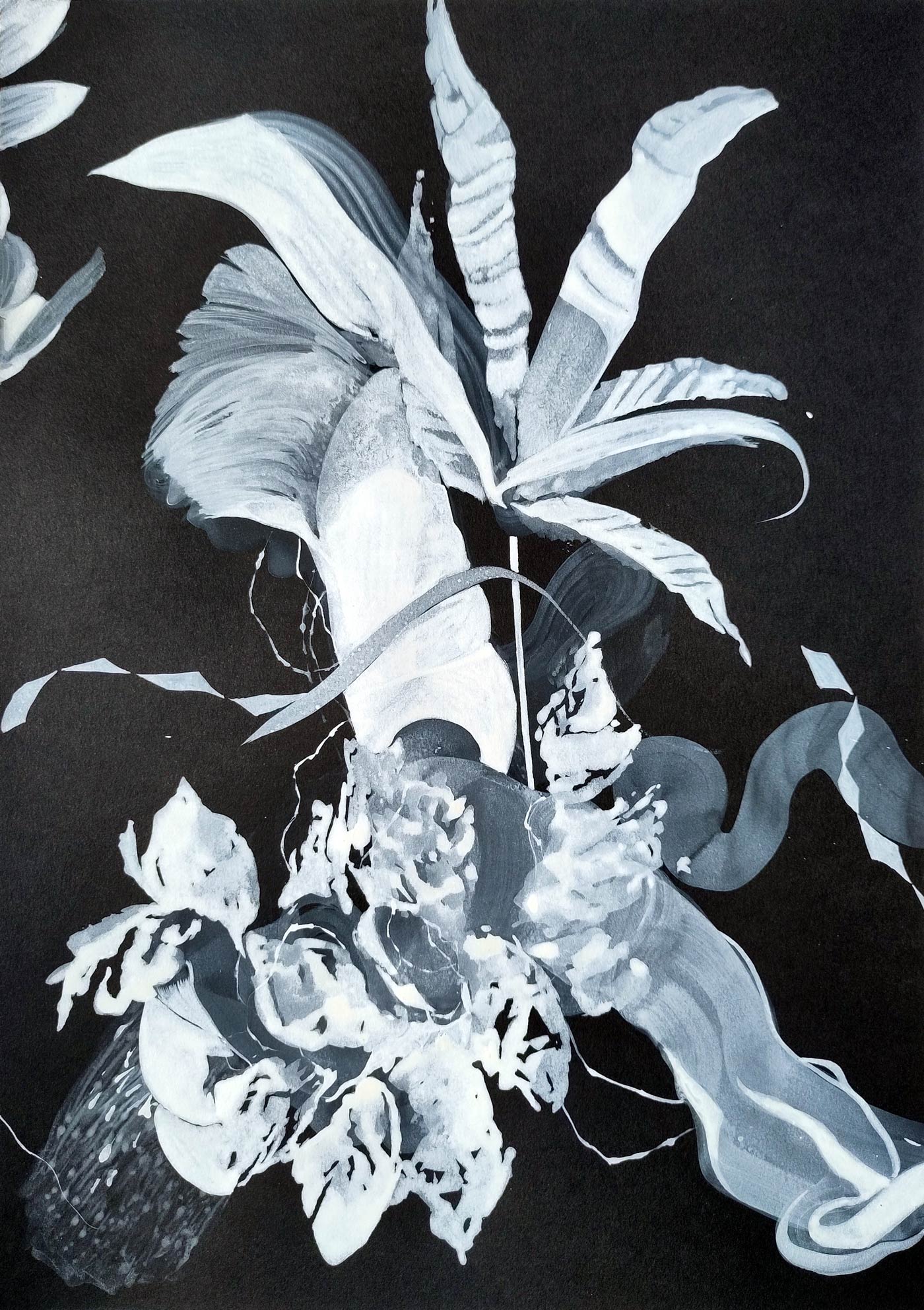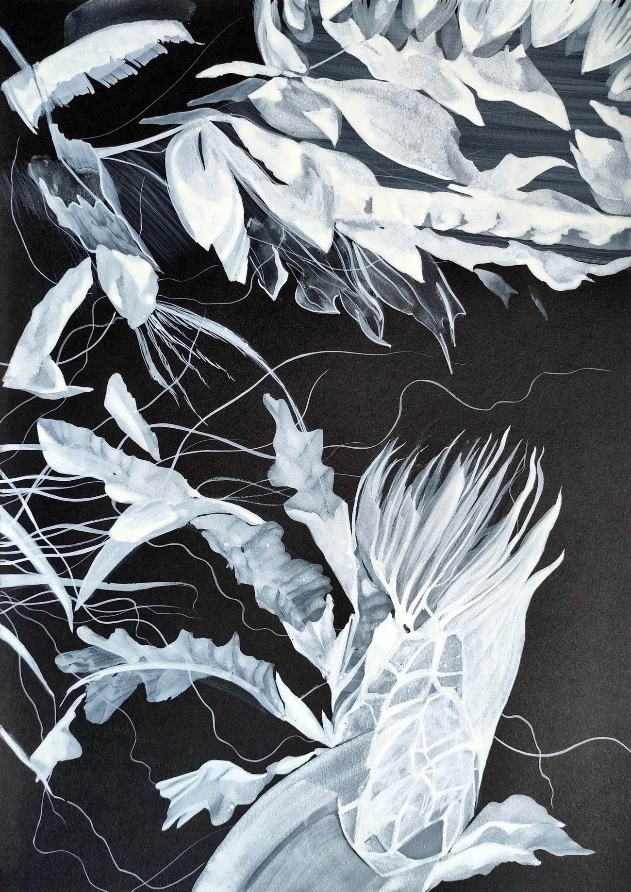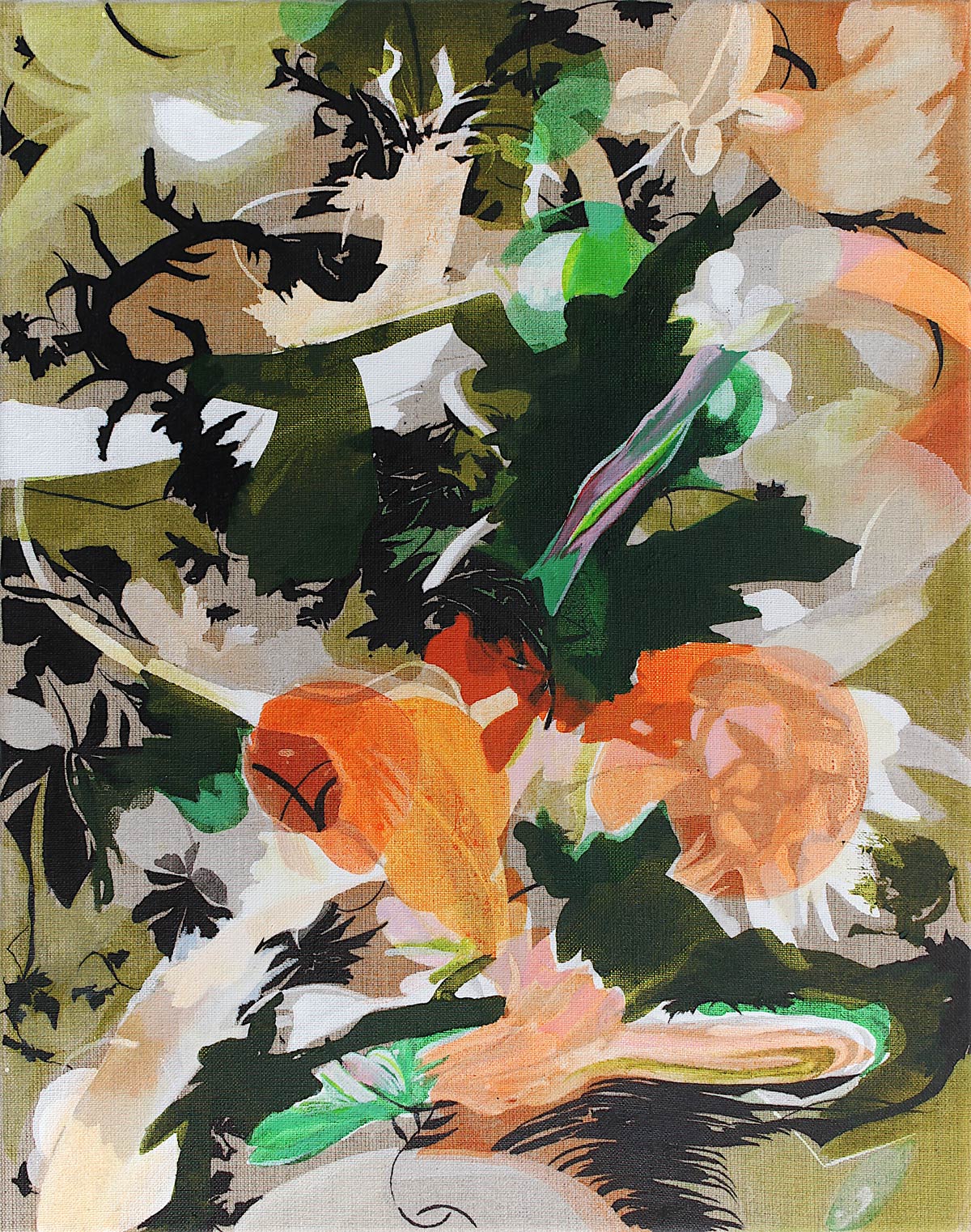 Cryptic Weed, 2023, Tusche auf Leinwand, 50 x 40 cm