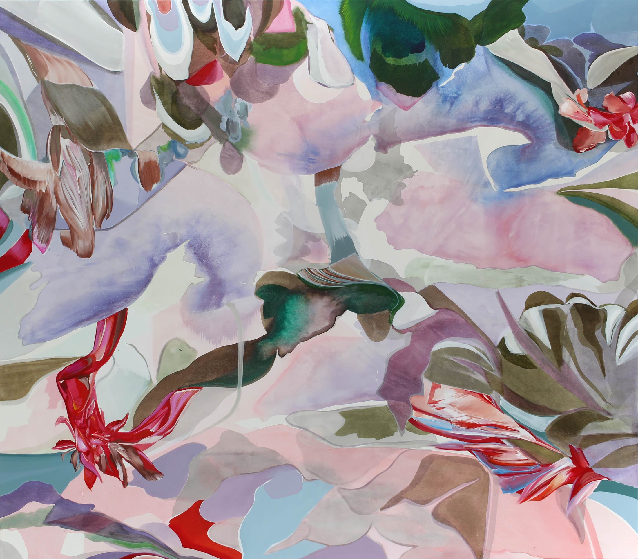 Swanning Marvels, 2023, Tusche/Acryl auf Leinwand, 140 x 160 cm