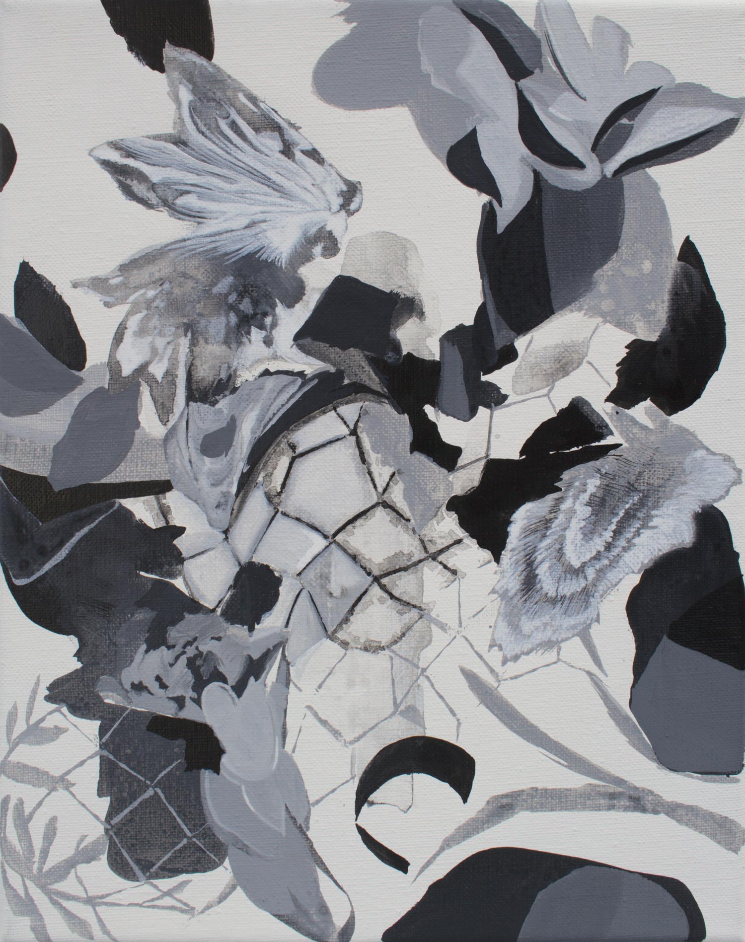 Camouflage, 2022, Tusche auf Leinwand, 30 x 24 cm