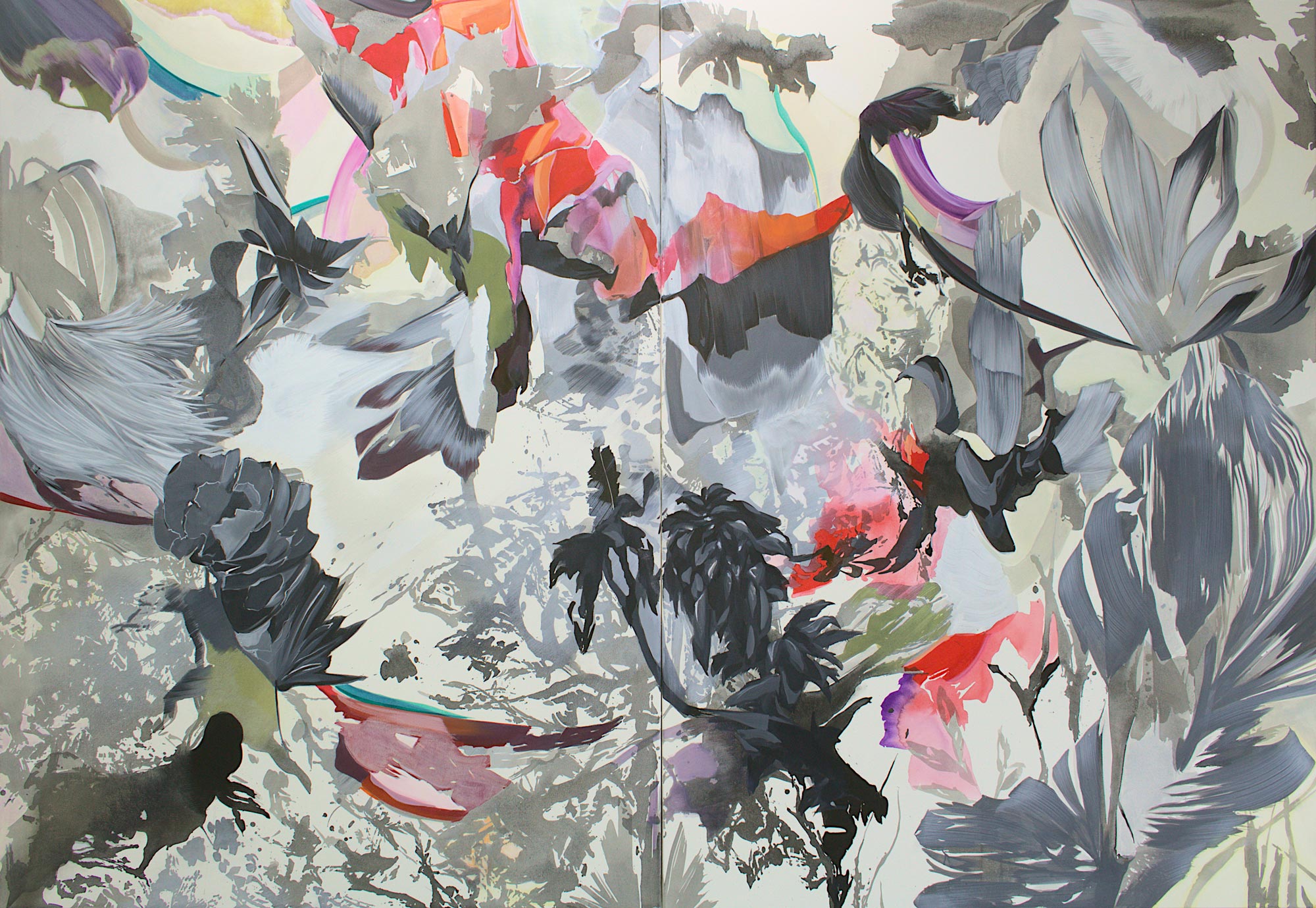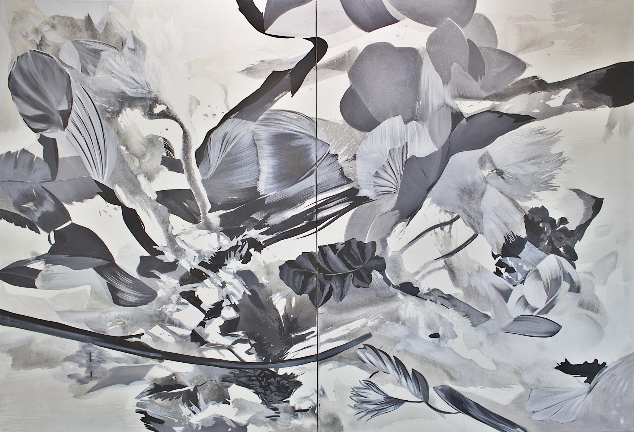 Taumelrausch, 2021, Tusche auf Leinwand, 180 x 260 cm, Diptychon – VERKAUFT