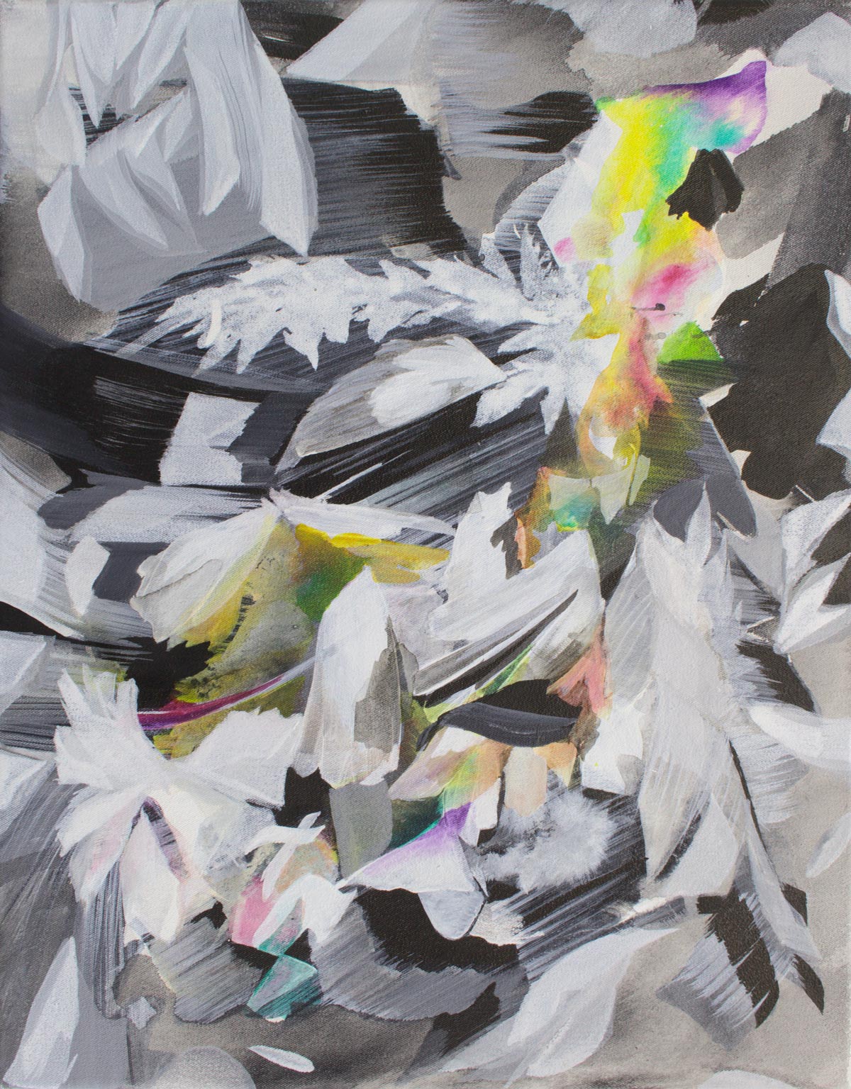 Fluktuation, 2021, Tusche und Acryl auf Leinwand, 47 x 37 cm